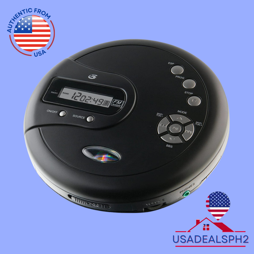 GPX PC332B - Portable CD Player with Anti-Slip Protection, FM Radio and Stereo Headphones, Black