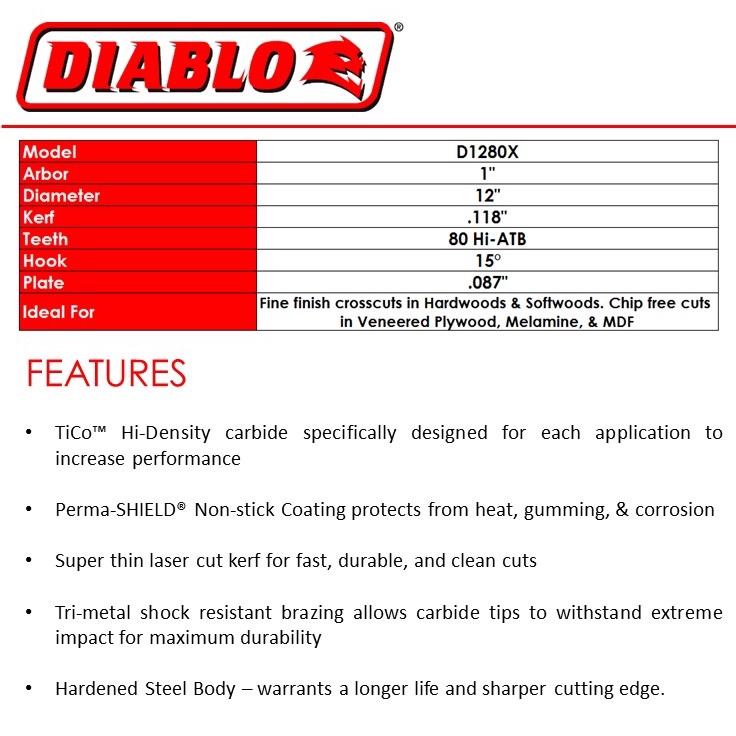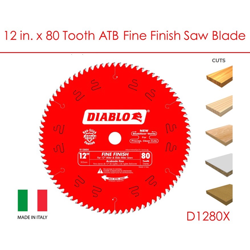 Diablo 12-inch x 80-tooth ATB Fine Finish Saw Blade - D1280X