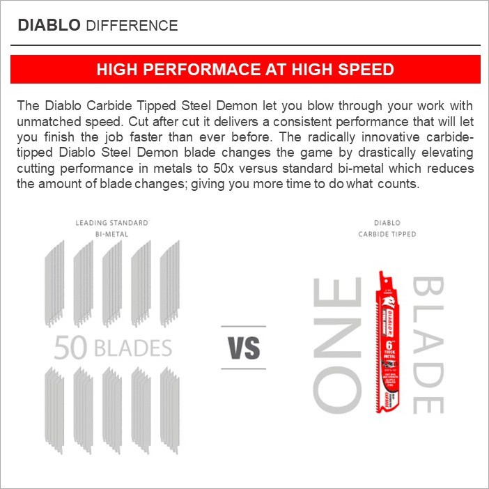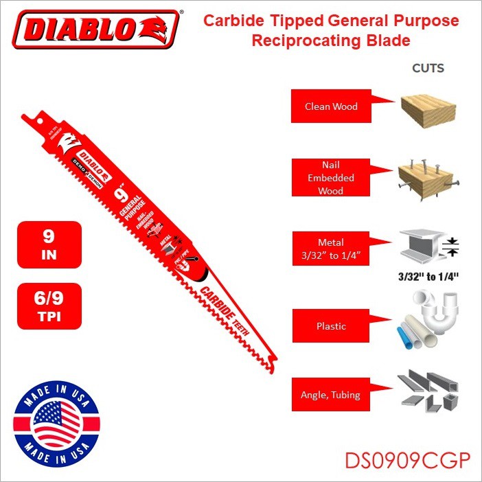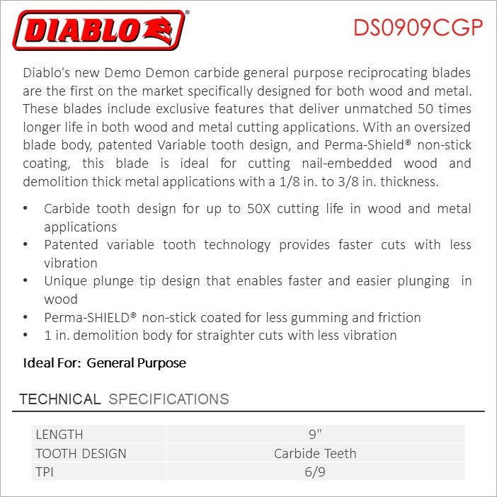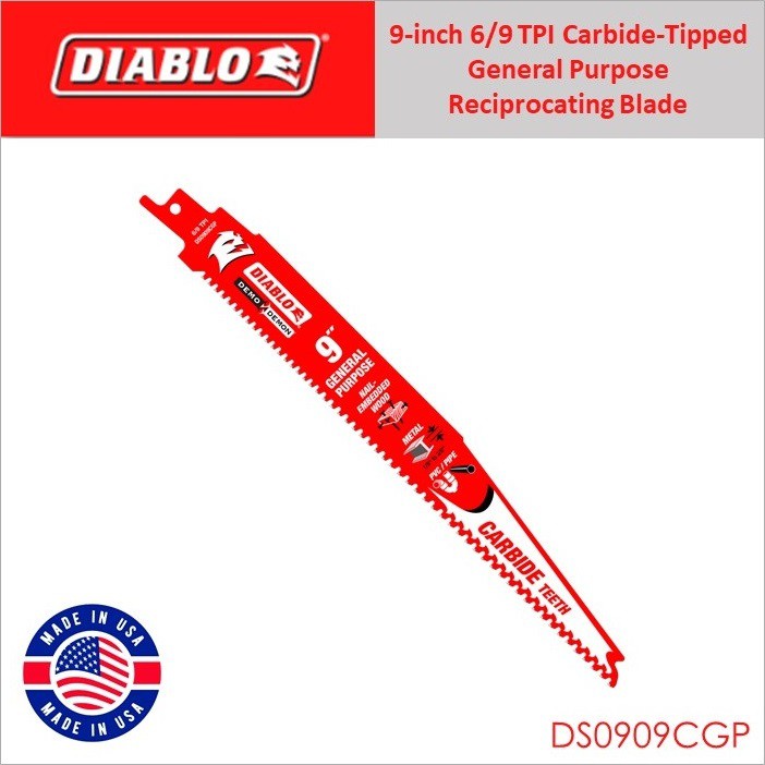 Diablo 9-inch Carbide-Tipped General Purpose Reciprocating Blade, Single Blade - DS0909CGP