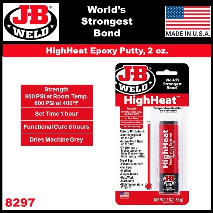 JB WELD / J-B Weld 8297 HighHeat Epoxy Putty Stick. 2 oz.