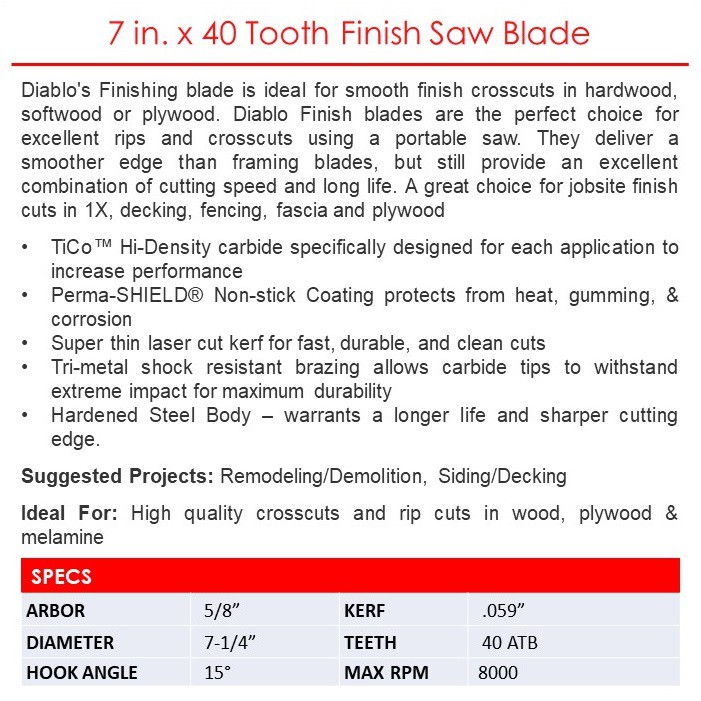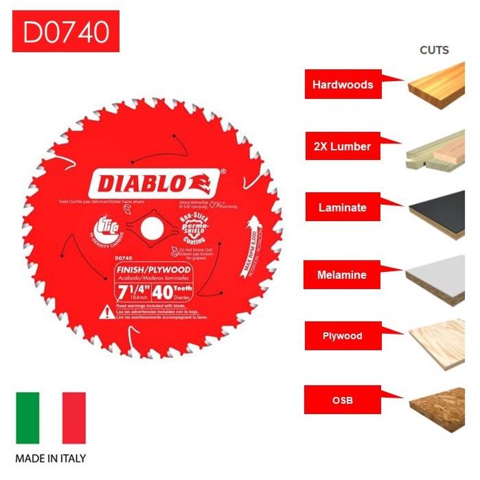 Diablo 7-1/4 x 40 Tooth ATB Finishing Saw Blade - D0740
