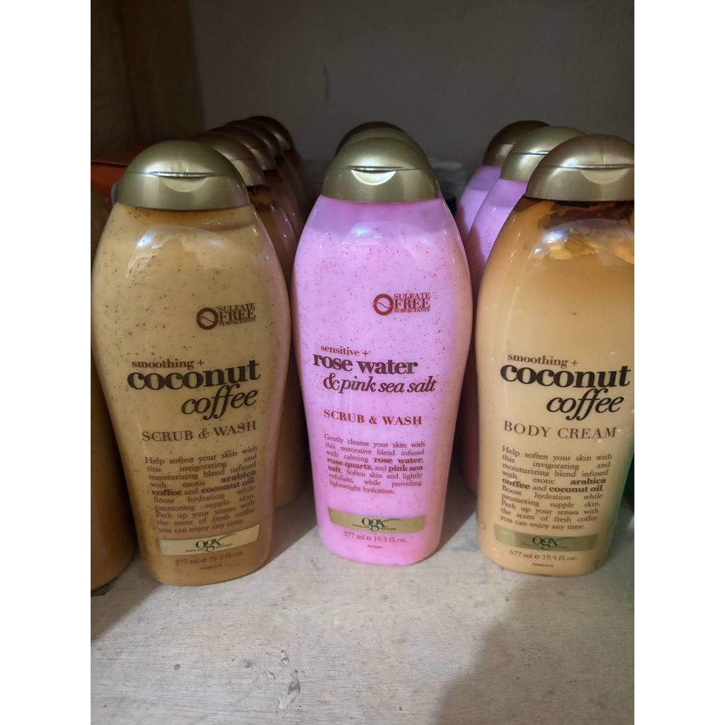 OGX Smoothing Coconut Coffee/Sensitive Rose Water Exfoliating Body Scrub/Body Cream