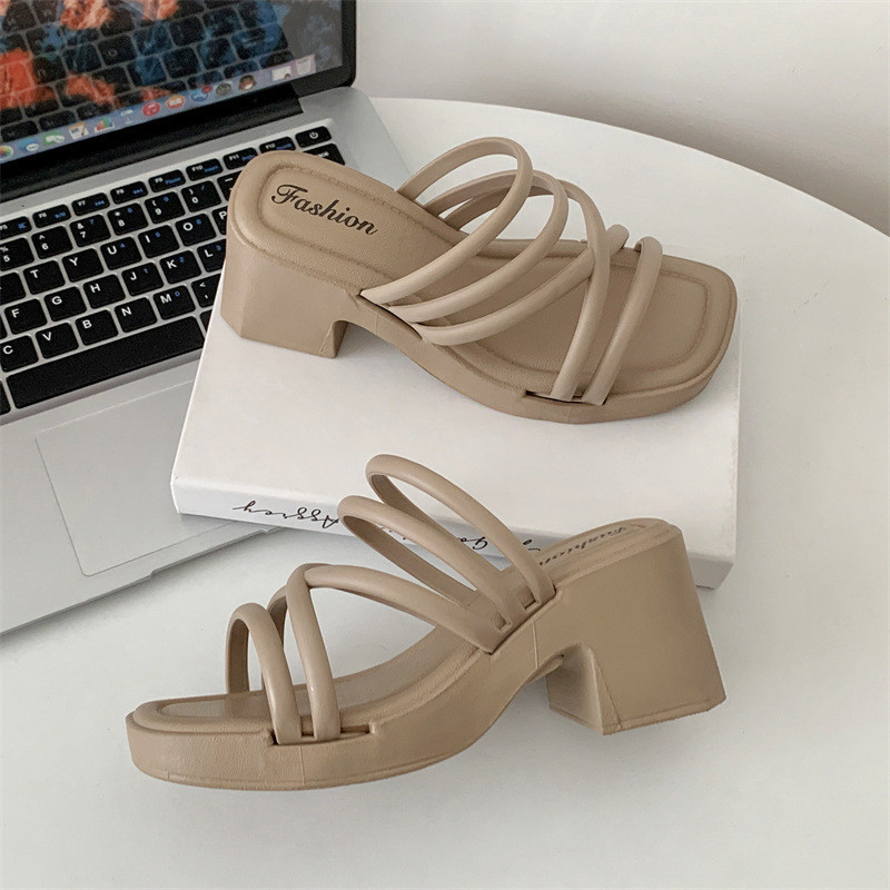 JEIKY (+1 if slim, +2 if mataba/malapad paa) New Korean 7CM Open Toe Thick-Heeled Sandals For Women
