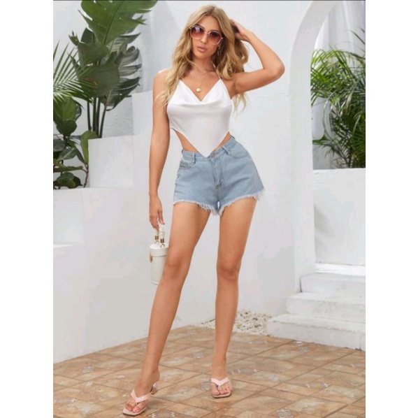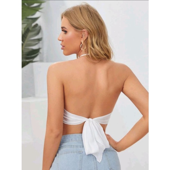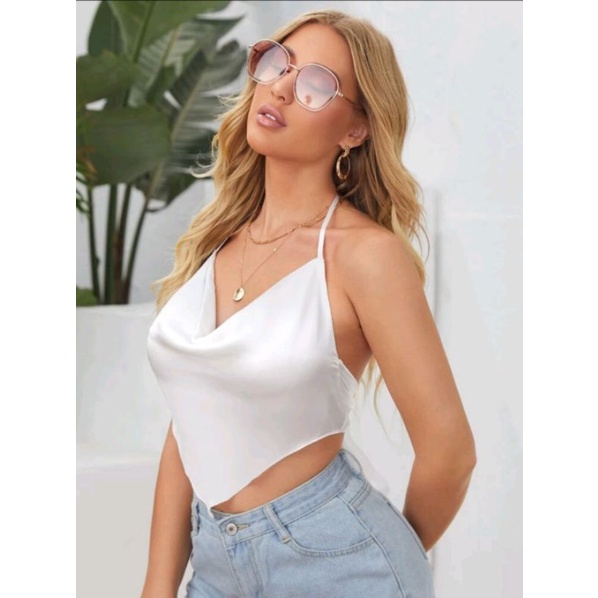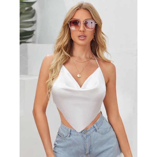 TRENDY Tie Backless Asymmetrical Hem Satin Halter Top (100% ORIGINAL)