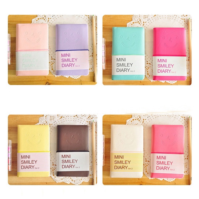 96 Sheets Mini Pocket Smiley Diary Notebooks Memo Note Book 5.2x3.2 Inch PU Leather Cover