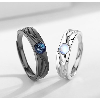 Angel And The Devil Couple Ring Opening Adjustable Vintage Glass Moonstone