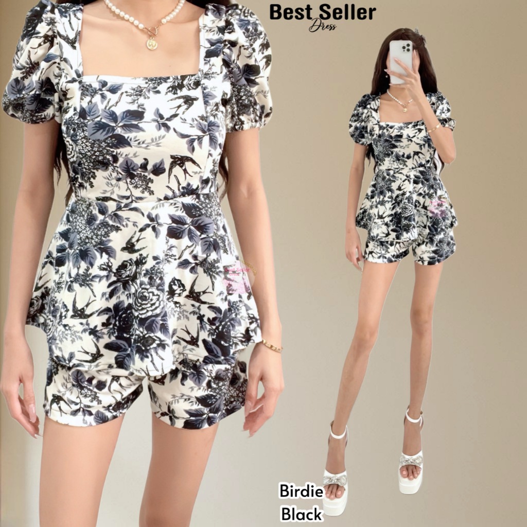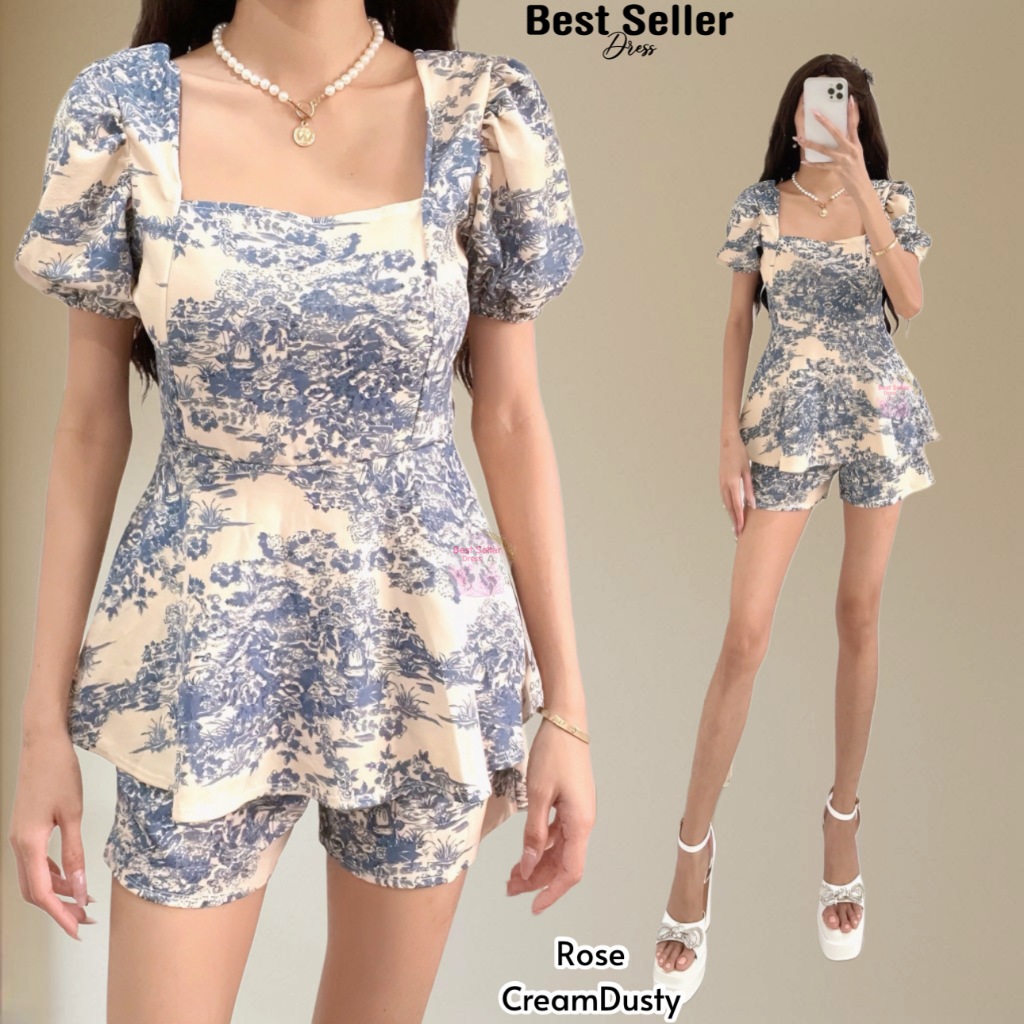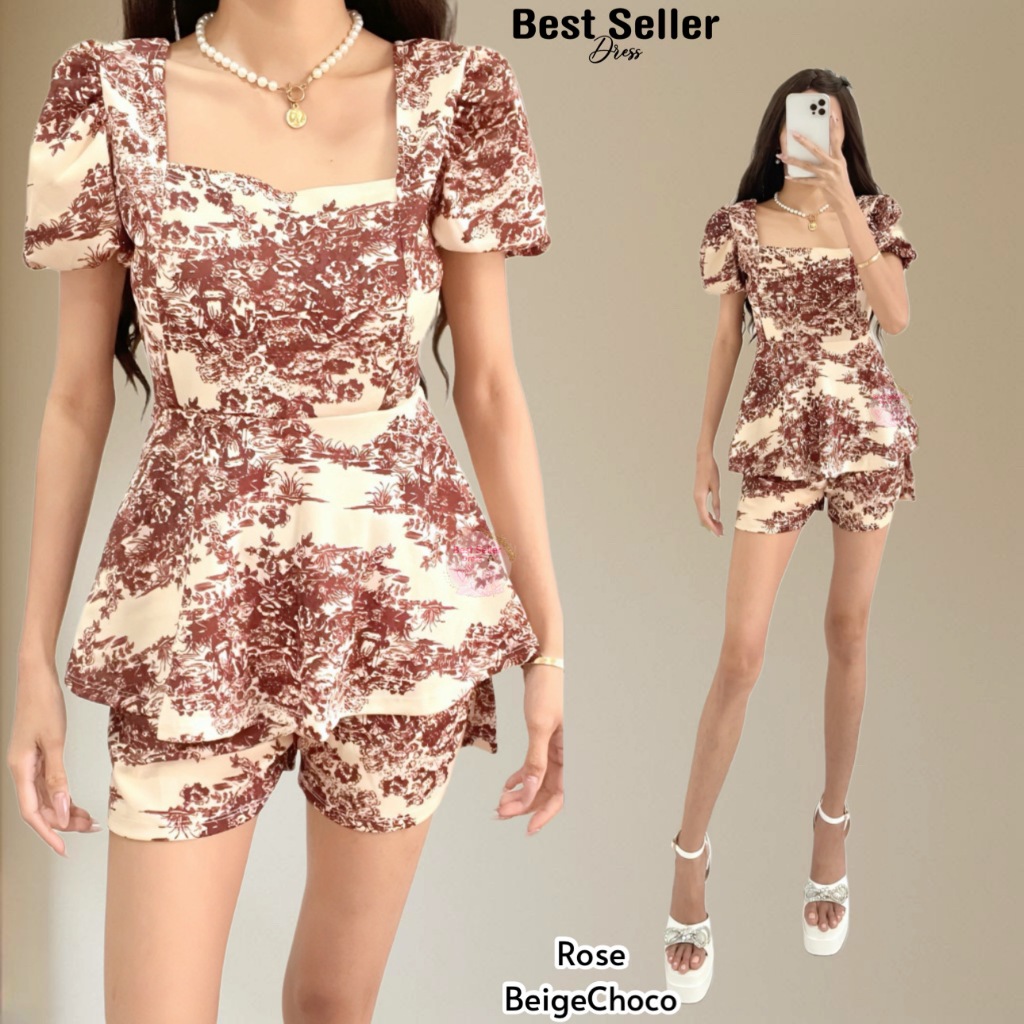 BSD Abby Printed (S-XXL)Puff Sleeves Top And Short (BEST SELLER DRESS)