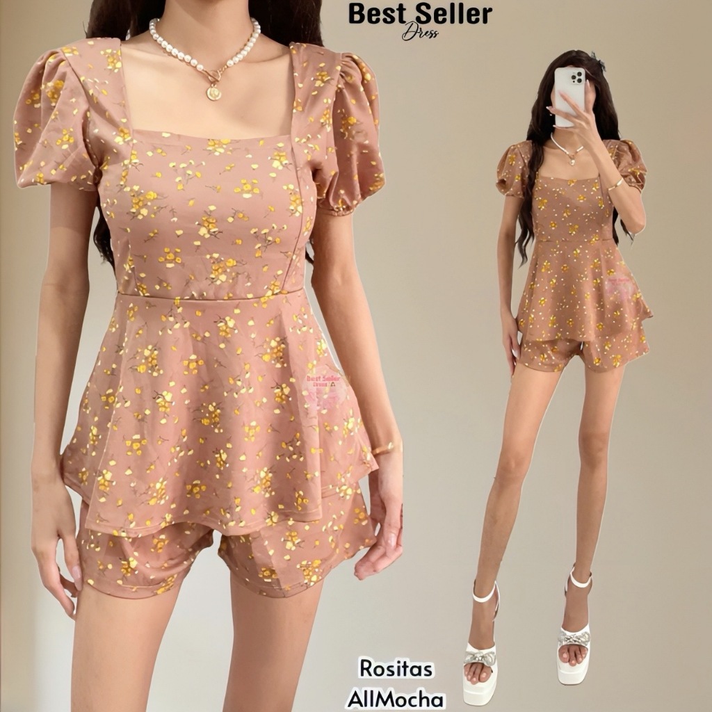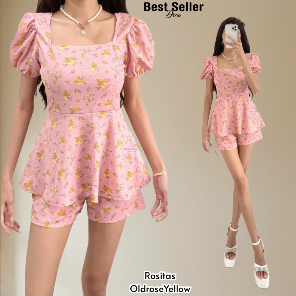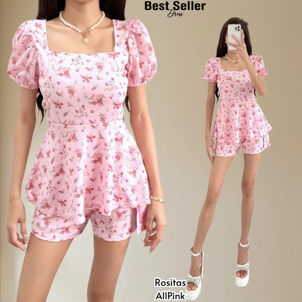 BSD Abby Printed (S-XXL)Puff Sleeves Top And Short (BEST SELLER DRESS)