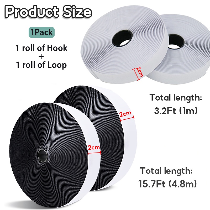 (1M/4.8M) Velcro or Magic Tape With Adhesive, Self-adhesive Velcro Tape With Adhesive Glue, Nylon Velcro Hook And Loop Tape Fasteners Can Be Reused