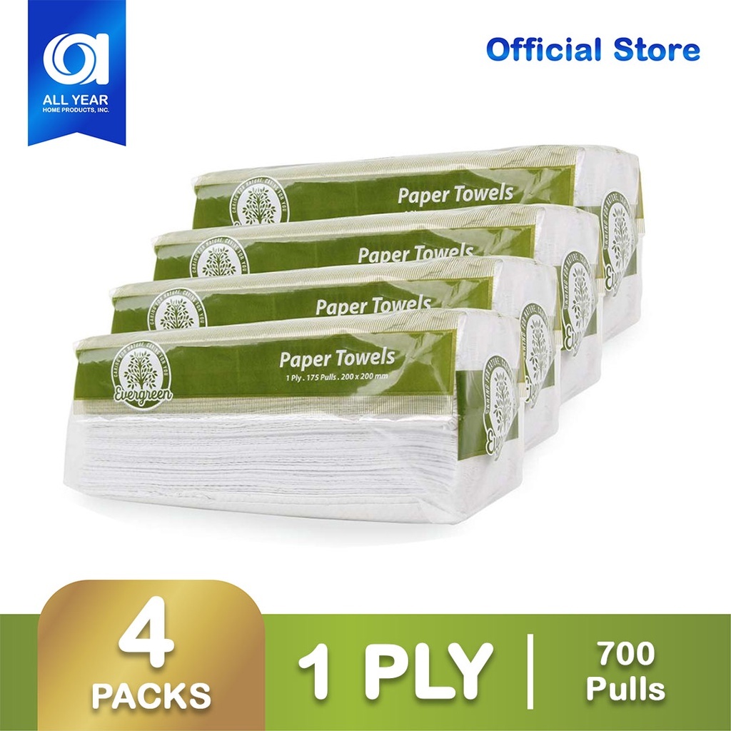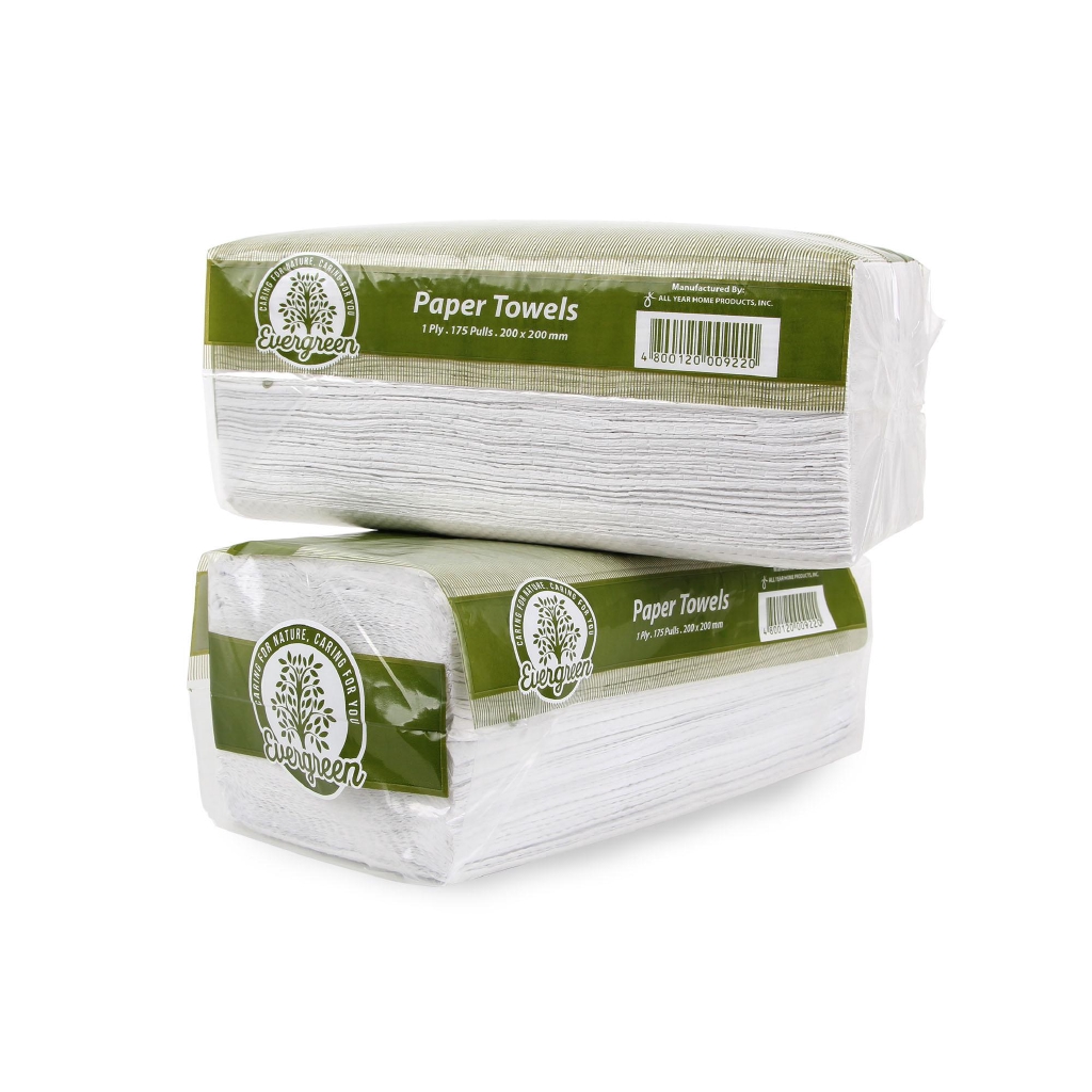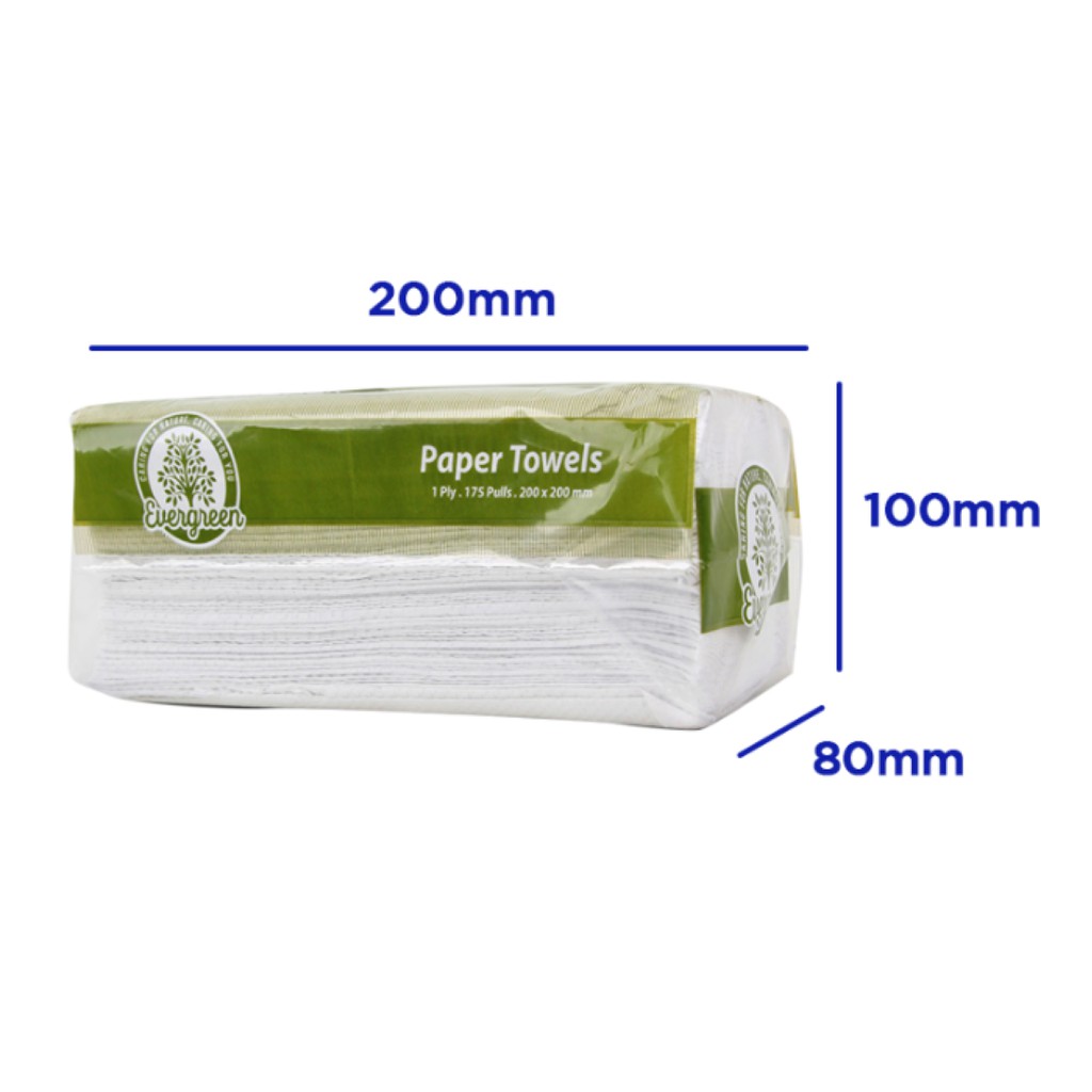 [1/2/4 Packs] Evergreen White Paper Towel 1-Ply 175 Pulls - Kitchen Tissue - Eco-Friendly Tissue