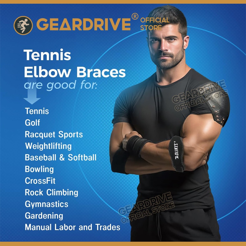 GEARDRIVE 1Piece Elbow Brace For Tendonitis And Tennis Golfers Support Arm Band Pain Relief Wrap Weightlifting Strap With Compression Pad Men Women