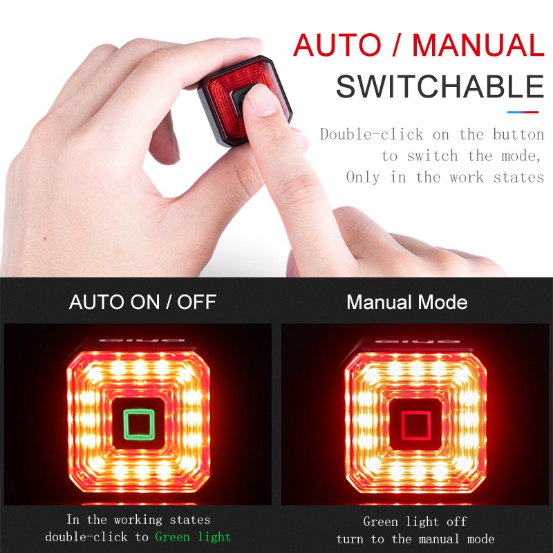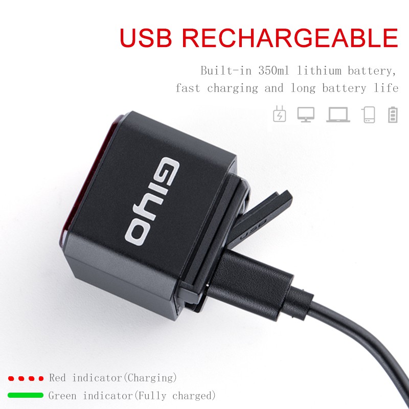 GIYO Smart Bicycle Light Rear Taillight Bike Accessories Auto On/Off USB Rechargeable Stop Signal Brake Lamp LED Safety Lantern