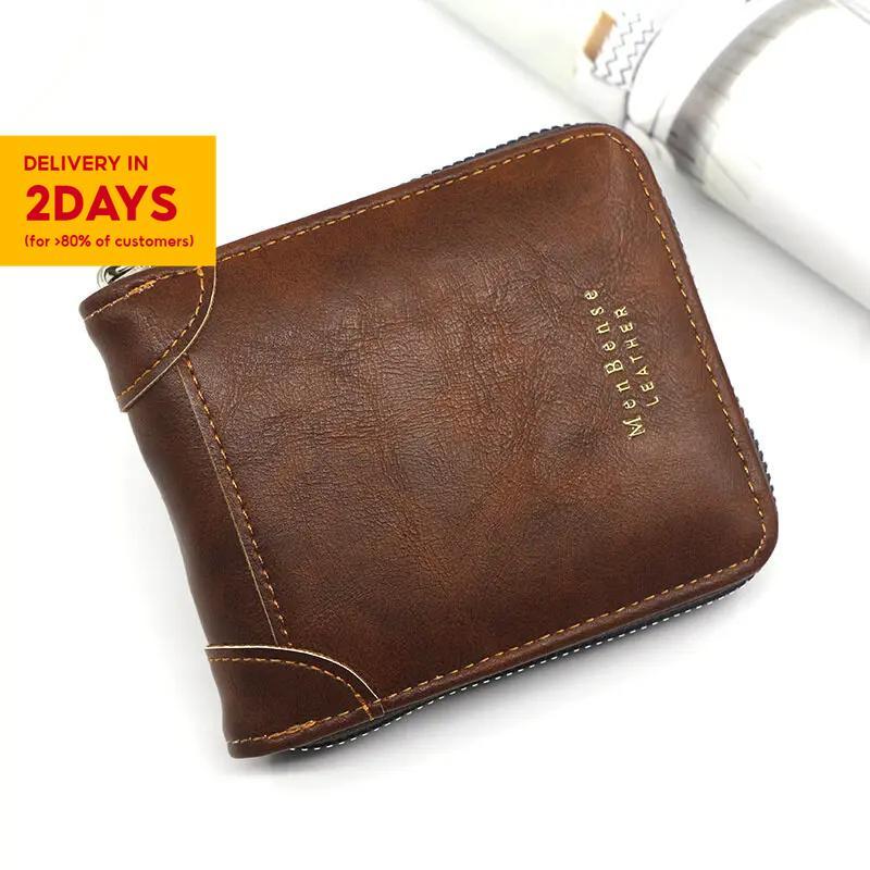 CEXIKA Men's PU Leather Wallet Father's Day Gift Short Zipper Fashion Casual Card Holder with Coin Pocket