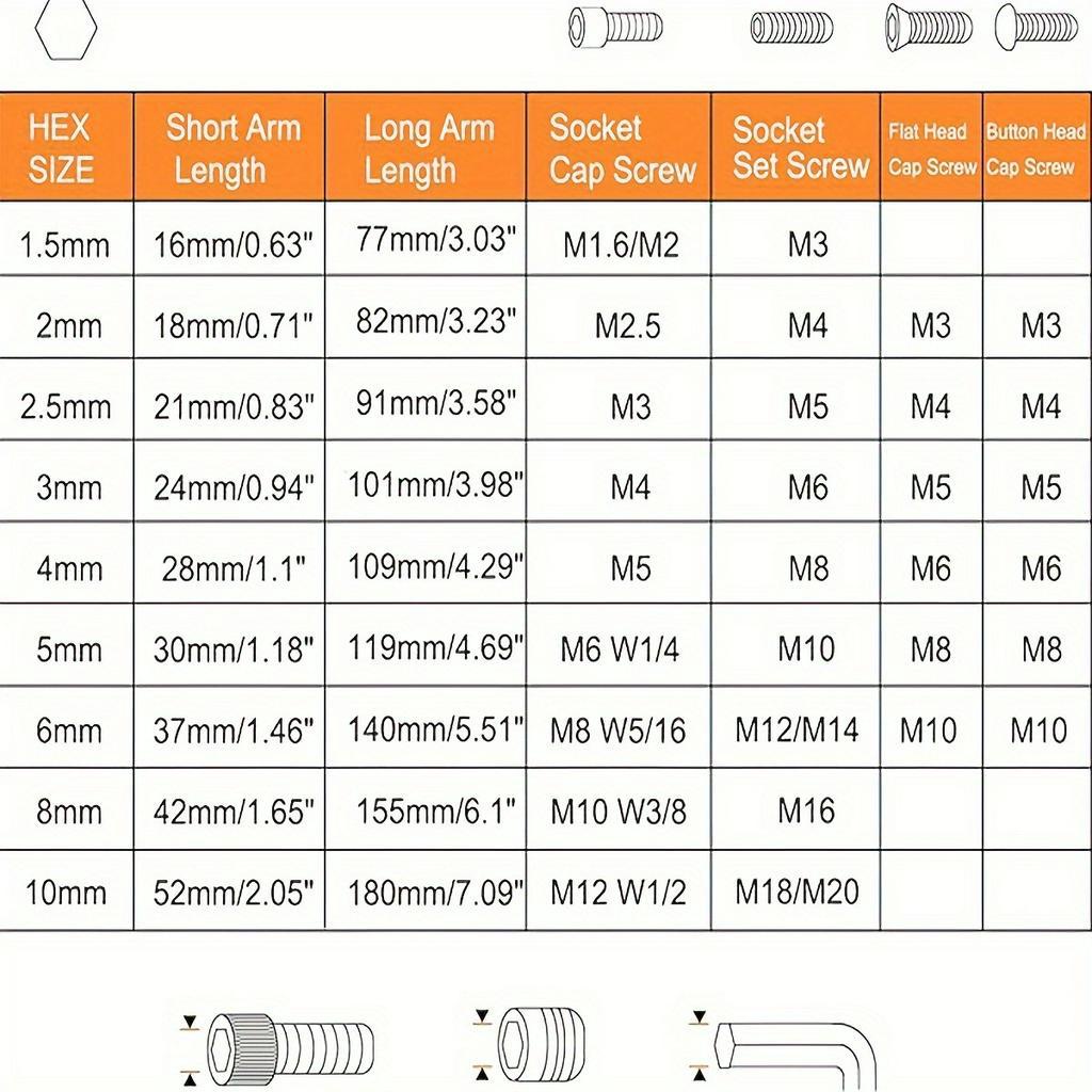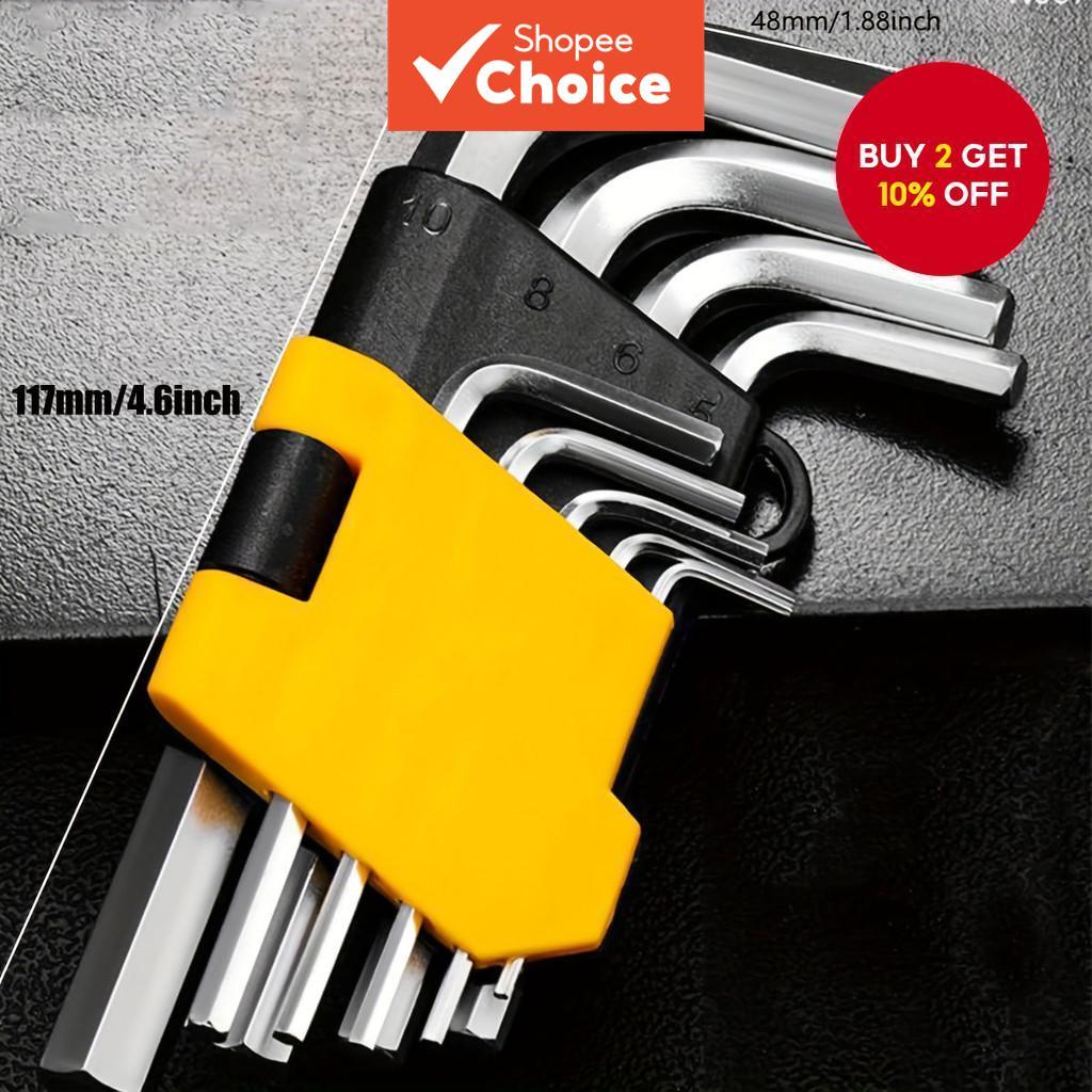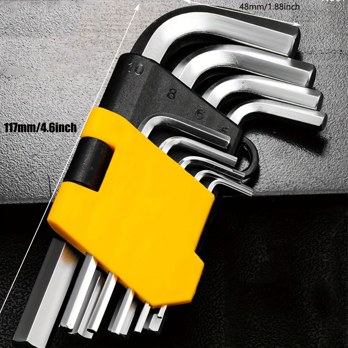 Hex Key Allen Wrench Set 9-Piece L-Shape Metric Chrome Vanadium Steel 1.5-10mm