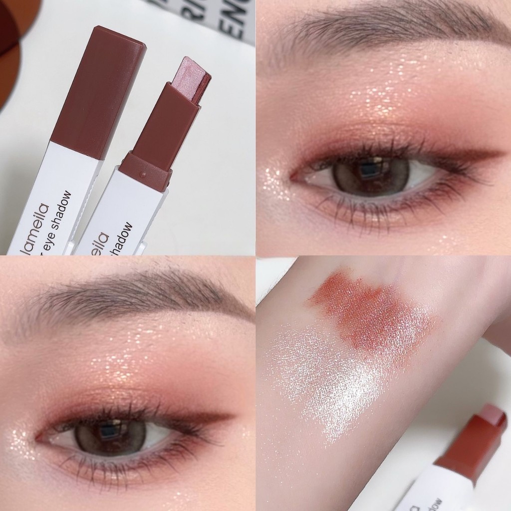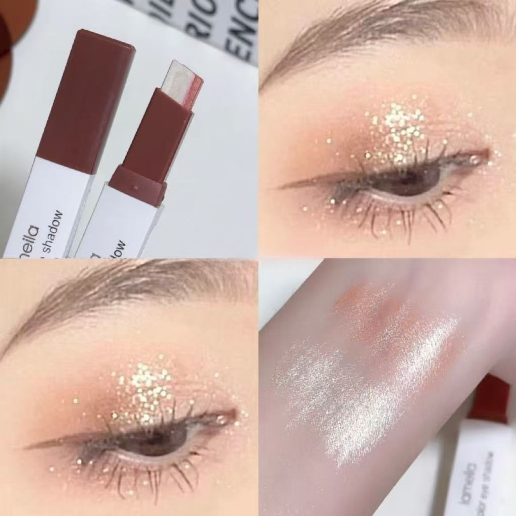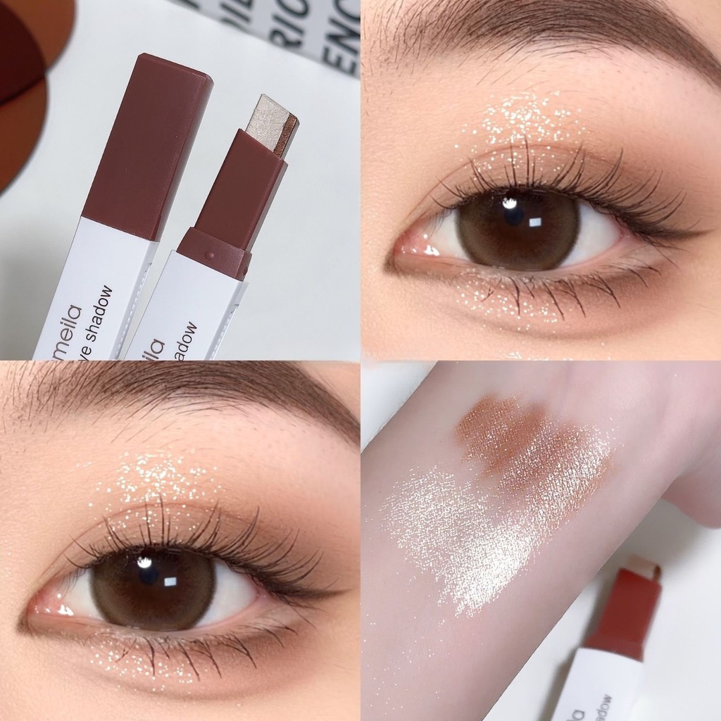 Dual-Color Eyeshadow Stick One-Swipe Application Waterproof & Sweatproof With Shimmery Pearl Finish.