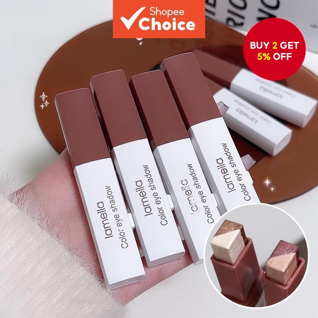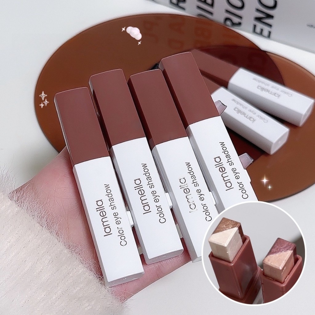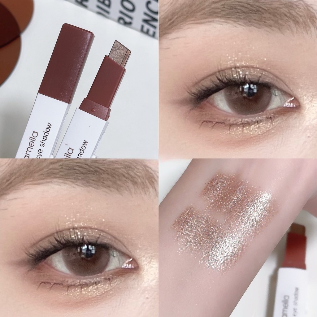 Dual-Color Eyeshadow Stick One-Swipe Application Waterproof & Sweatproof With Shimmery Pearl Finish.