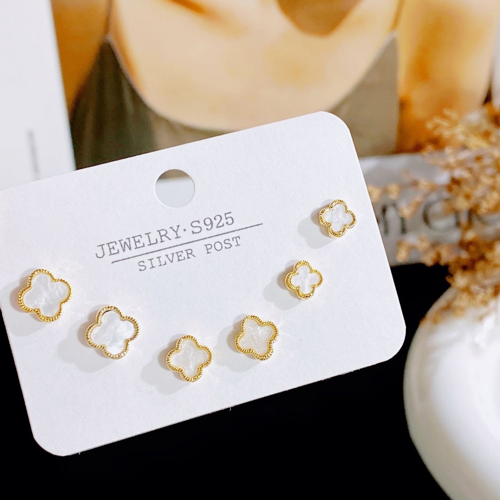 Korean Fashion Four Leaf Clover Earrings Set in Gold Color - A Delicate Gift for Students and Women.