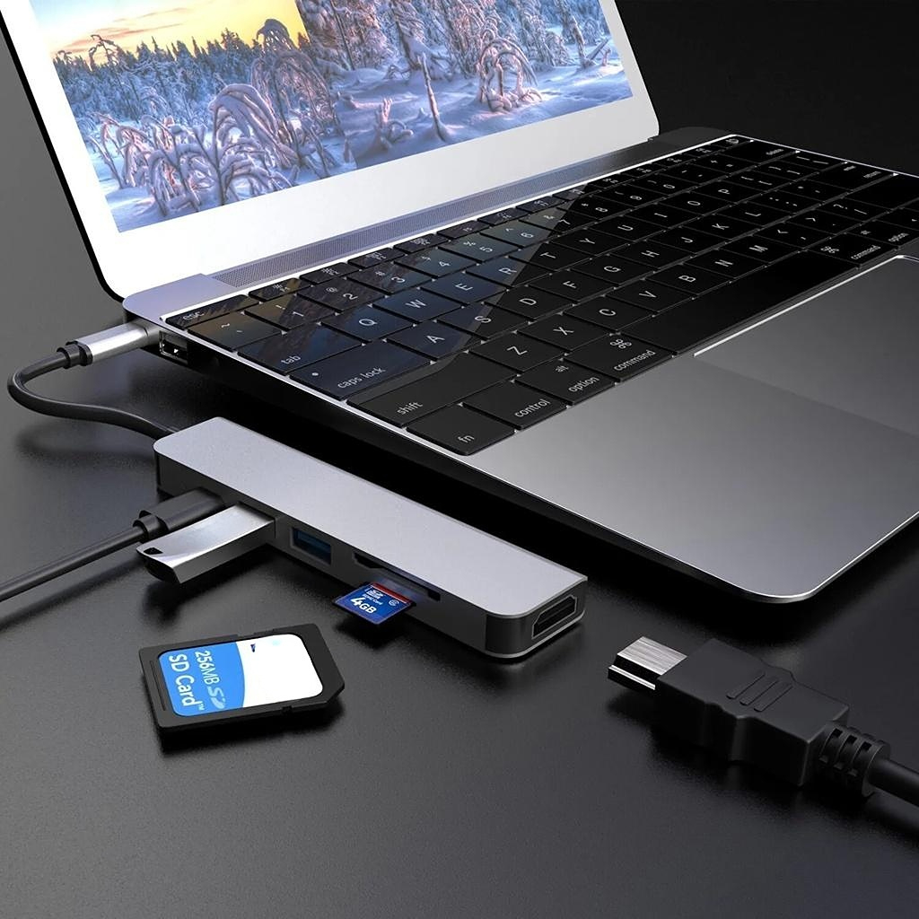 Type C HUB 6 In 1 USB 3.0 USB-C 87w PD SD/TF Card Slot HDMI 4K Dock Station For MacBook Pro Air Parts Splitter