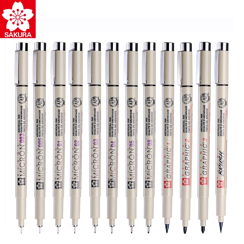 12 Size Pigma Micron Pen-SIZE :1.0/005/01/02/03/04/05/08/1/BR/