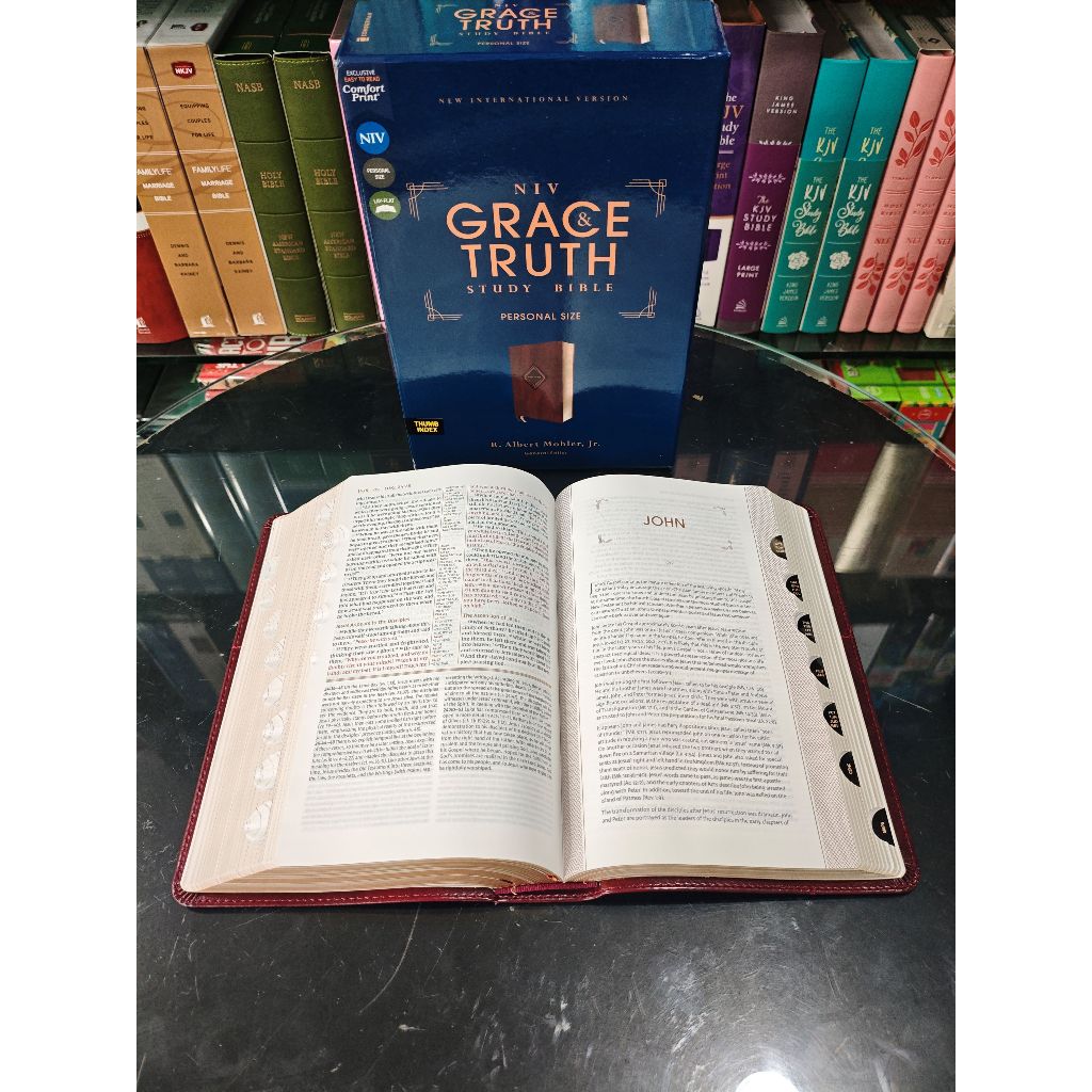 PCBS NIV Grace Study Bible Personal Size with INDEXED (FONT SIZE 8, RED LEETER,BURG) NIV Study Bible