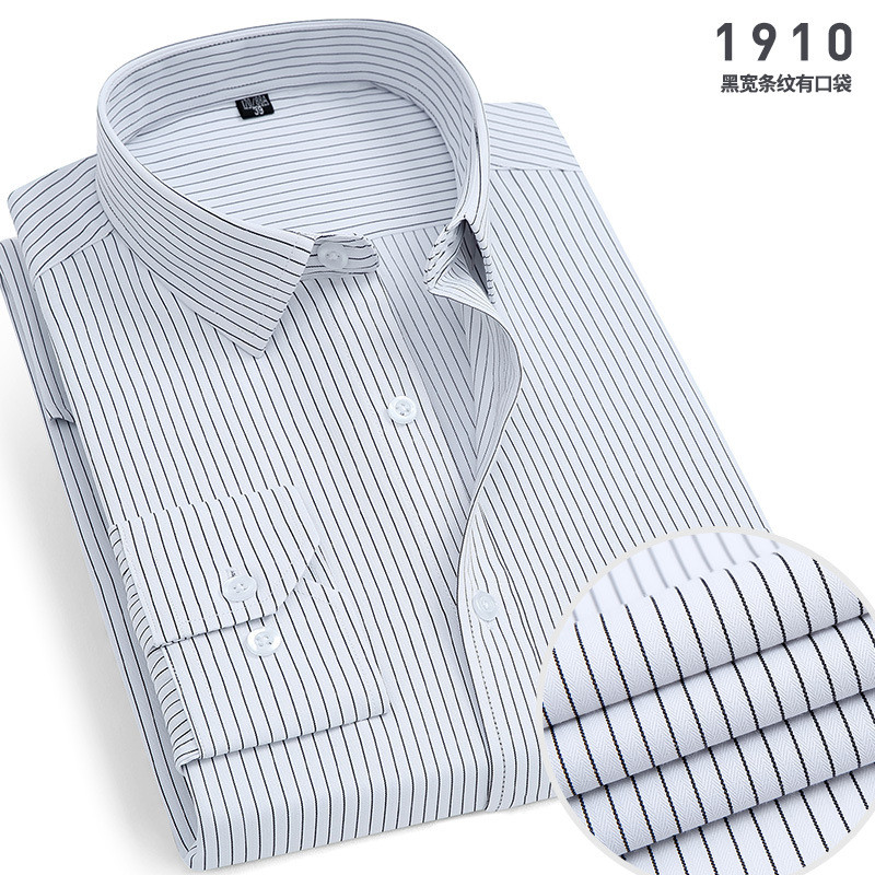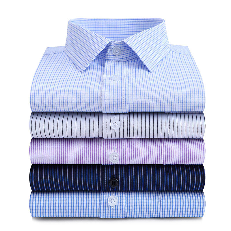 Spring Autumn Men's Long-Sleeved Shirts Middle-Aged Business Workwear Non-Iron Blue Stripes Profession