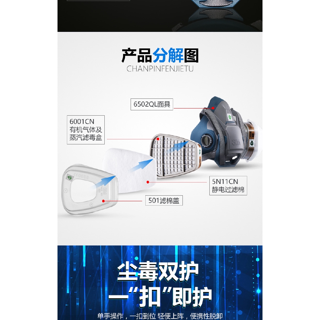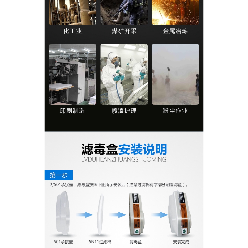 6502 QL Protective Mask With 2091 Dustproof Half Face Gas Respirator For Painting Spraying