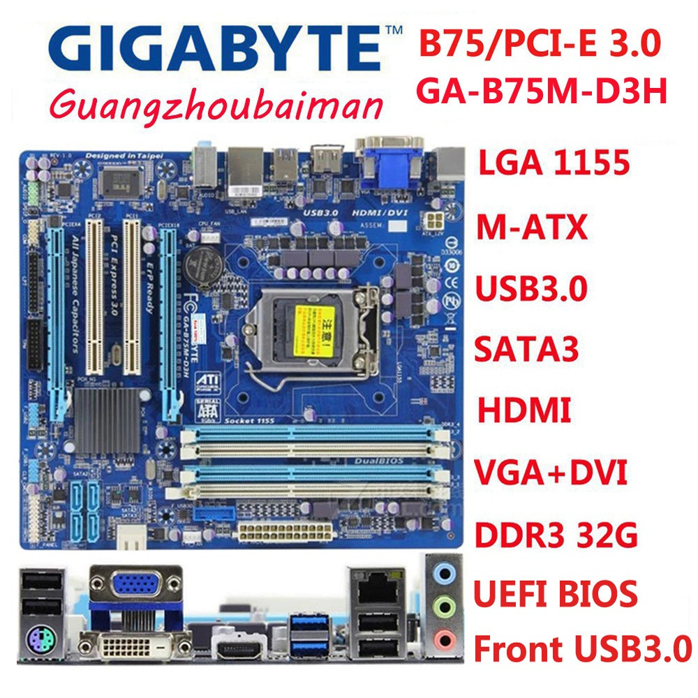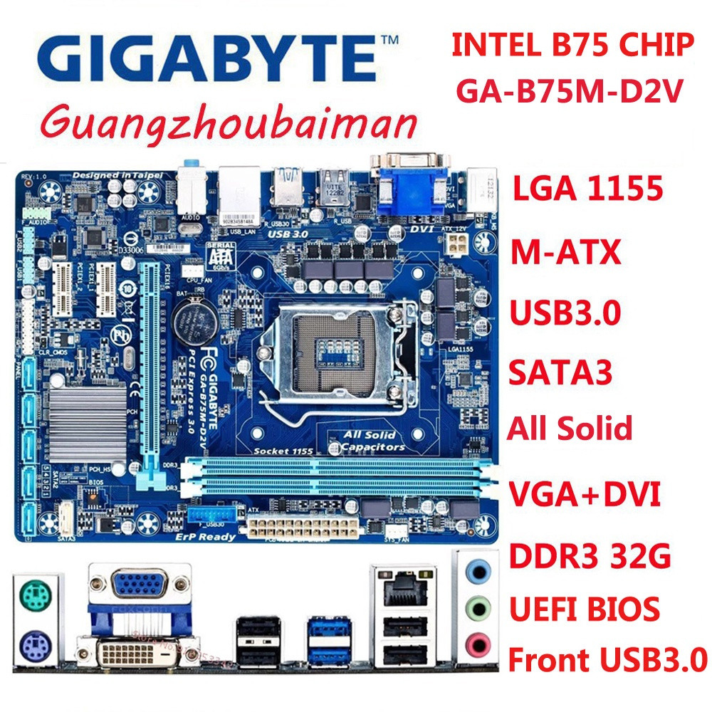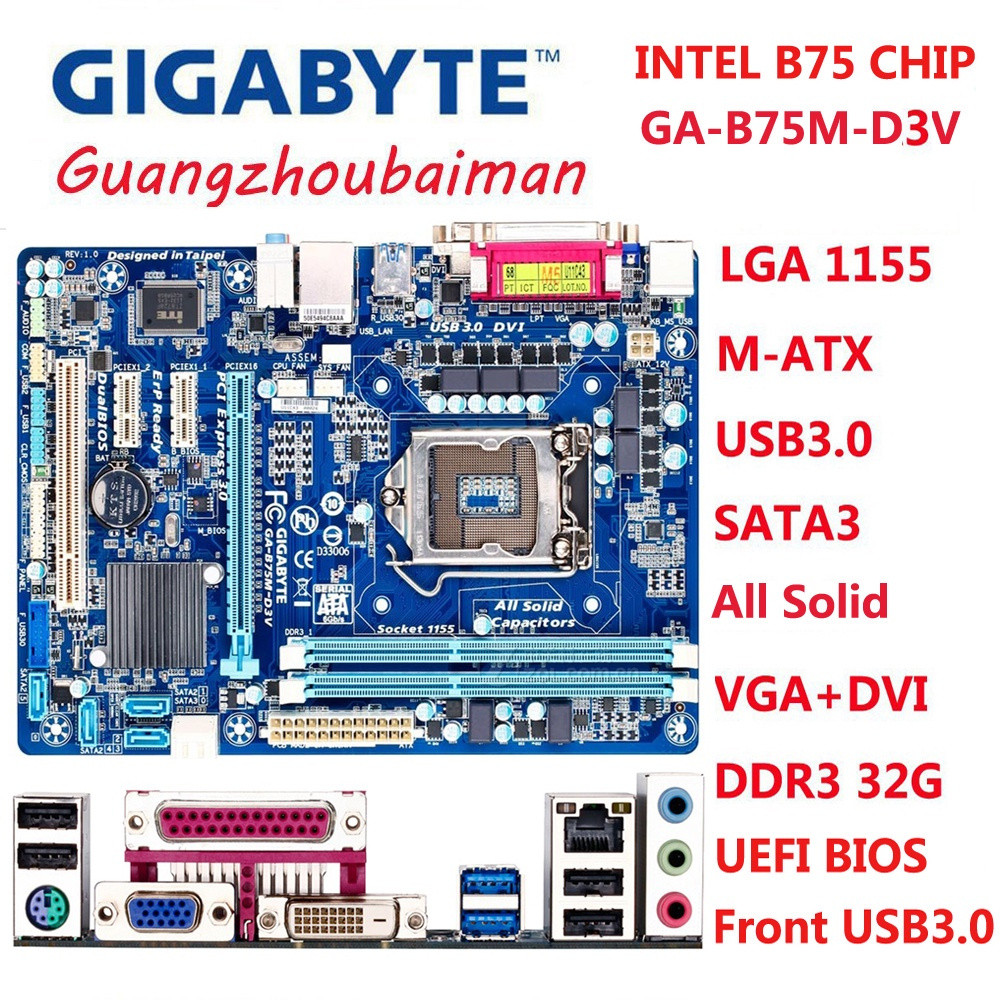 Used Gigabyte Ga-B75M-D3H HD3 D3V D2V FOR INTEL LGA 1155 B75 motherboard Socket 1155 i3 i5 i7 DDR3 32G USB3.0 SATA3