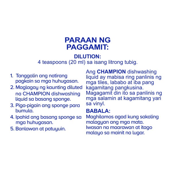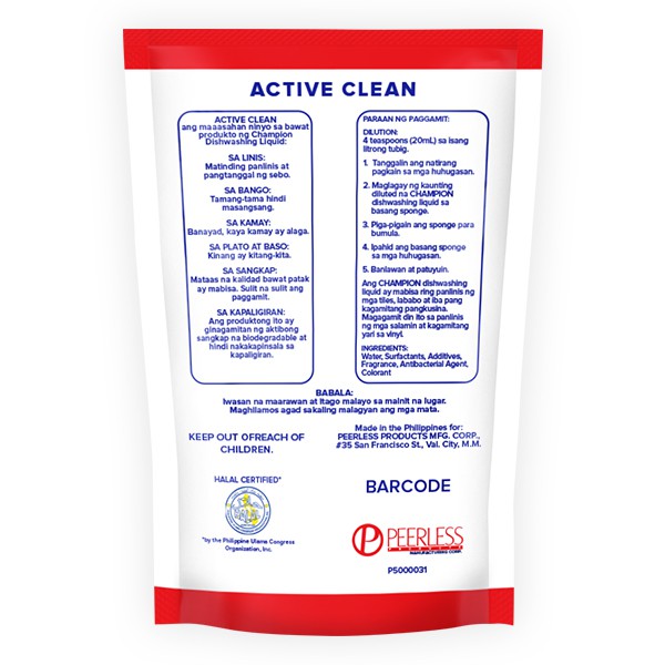 Champion Active Clean Dishwashing Liquid 1L SUP