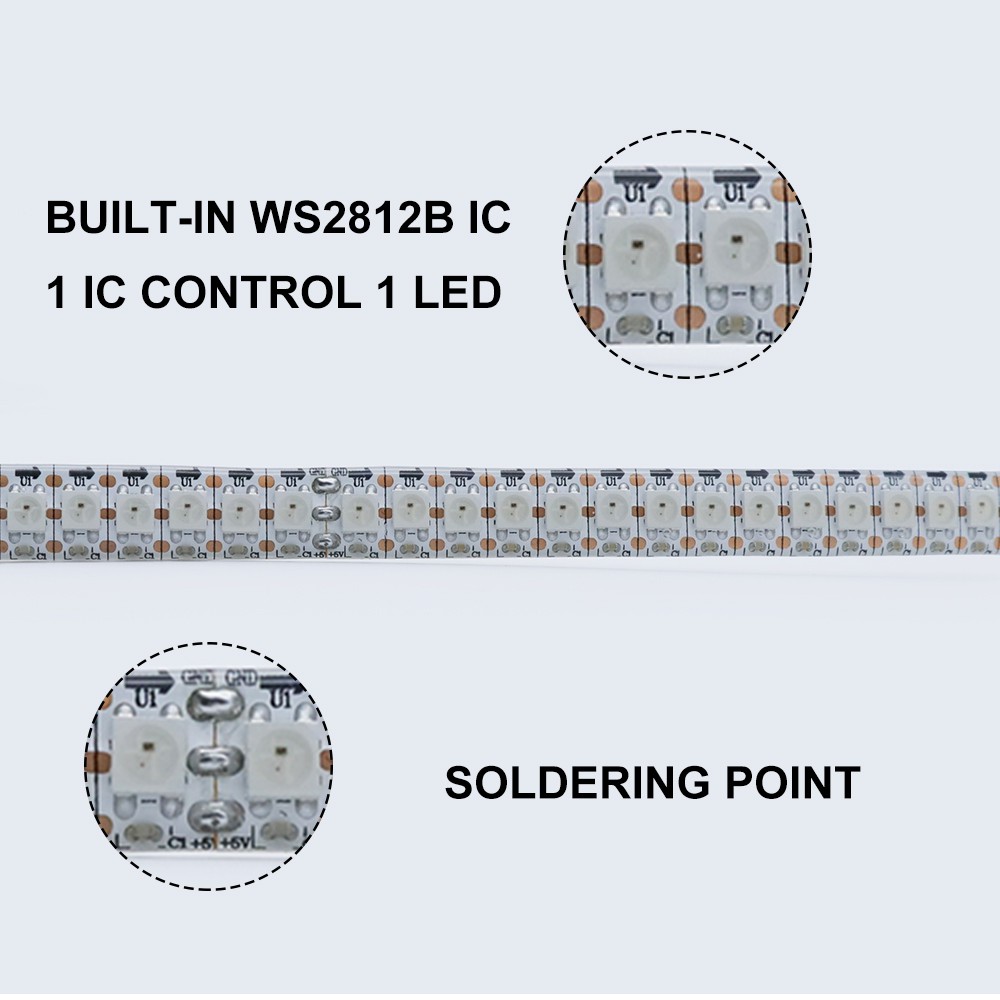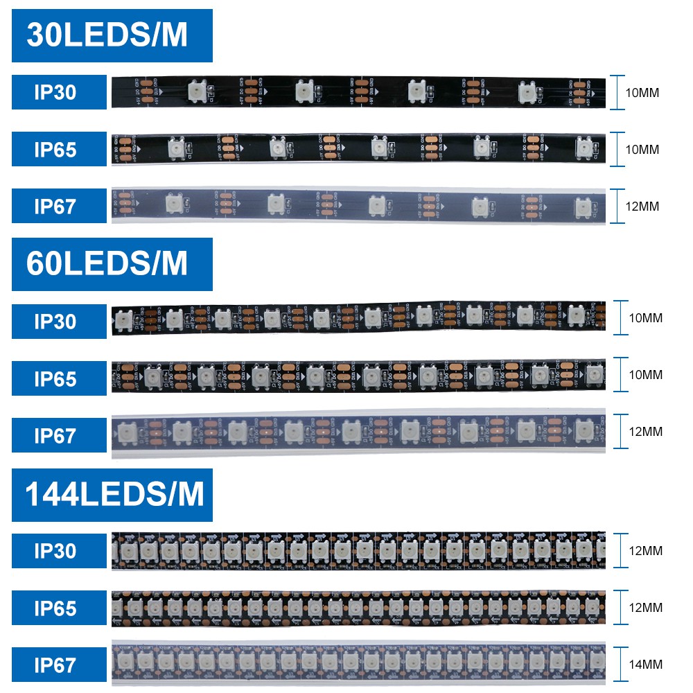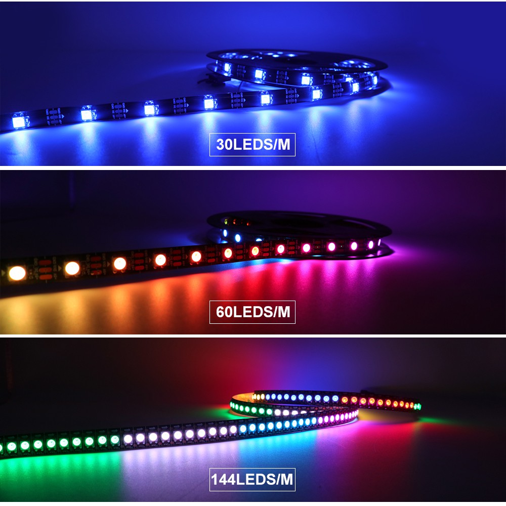 WS2812B LED Strip light DC5V 30/60/144 Pixel Built-in 2812 IC Color Individually Addressable RGB LED Strip 5050 1M/5M