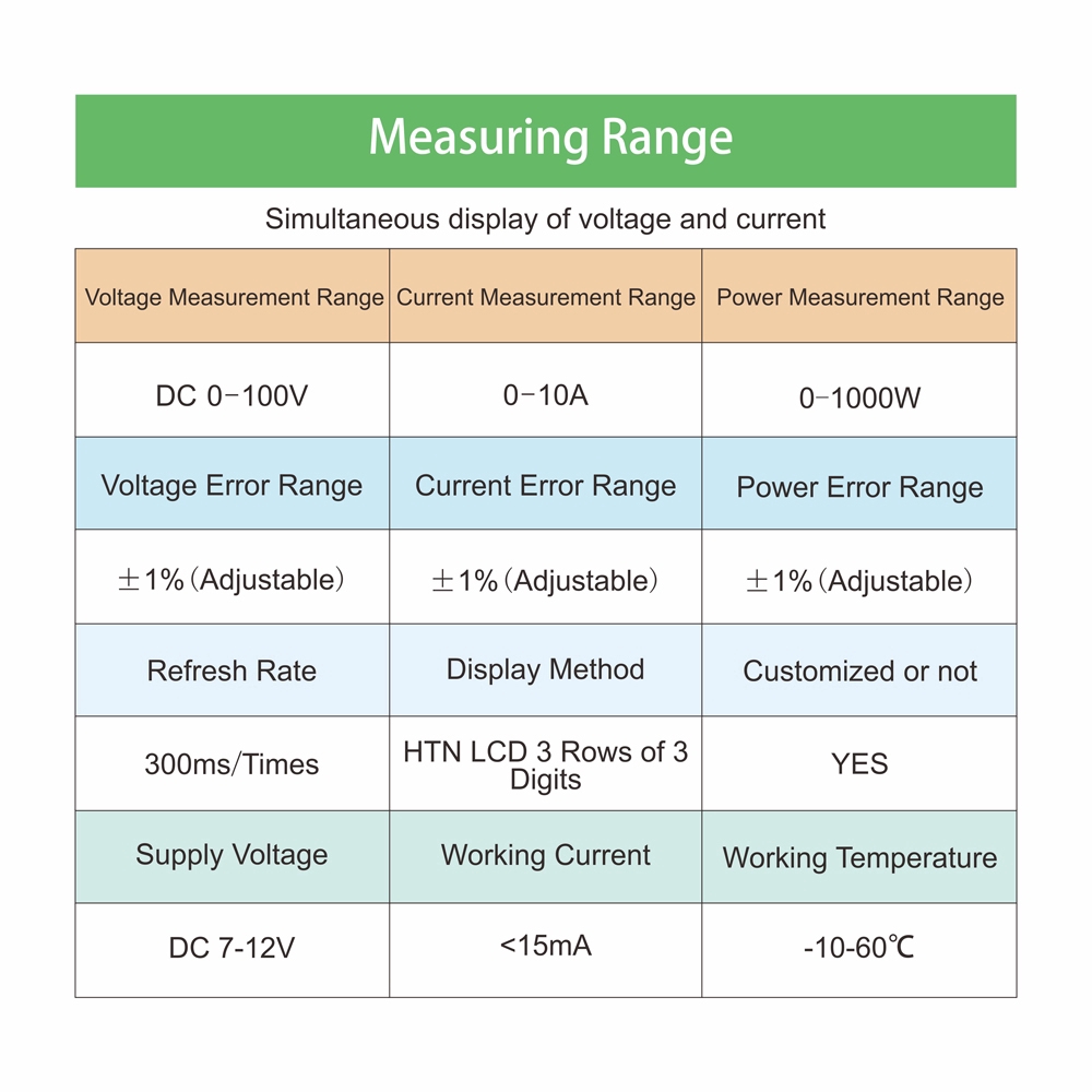 Pcbfun Dc 100V 10A 1000W Digital Lcd Voltmeter Ammeter Wattmeter Voltage Current Volt Power Meter Tester
