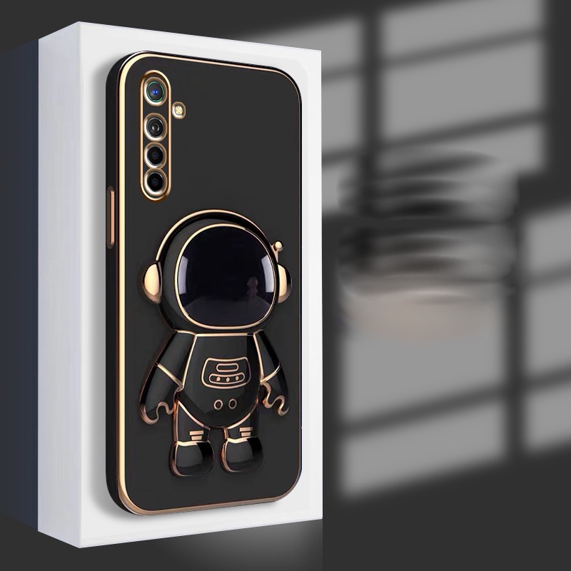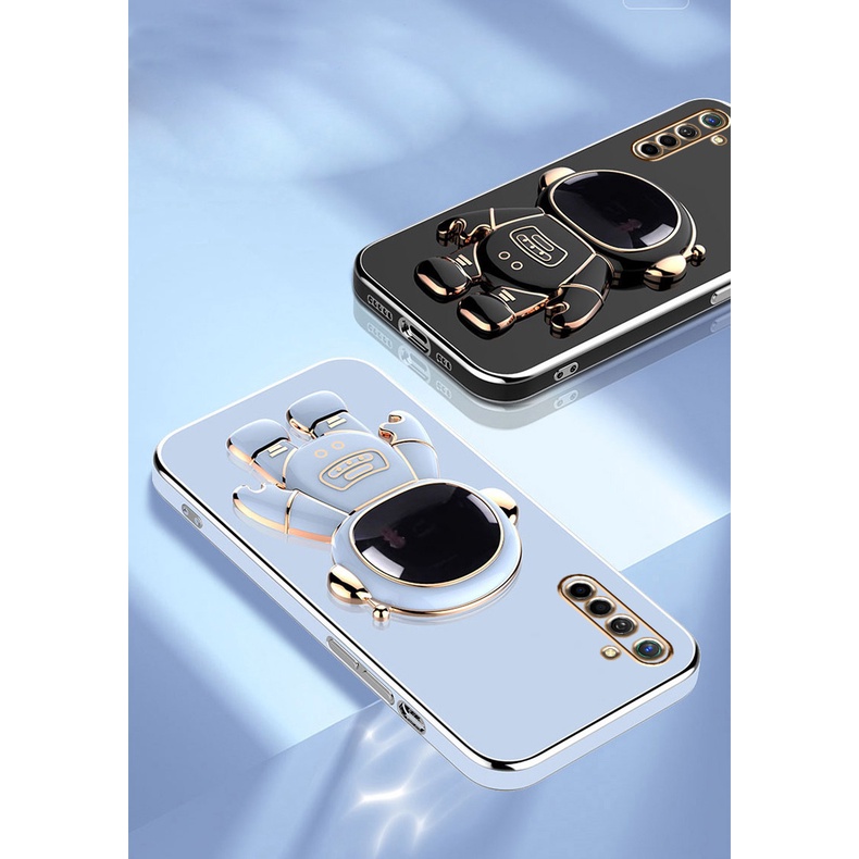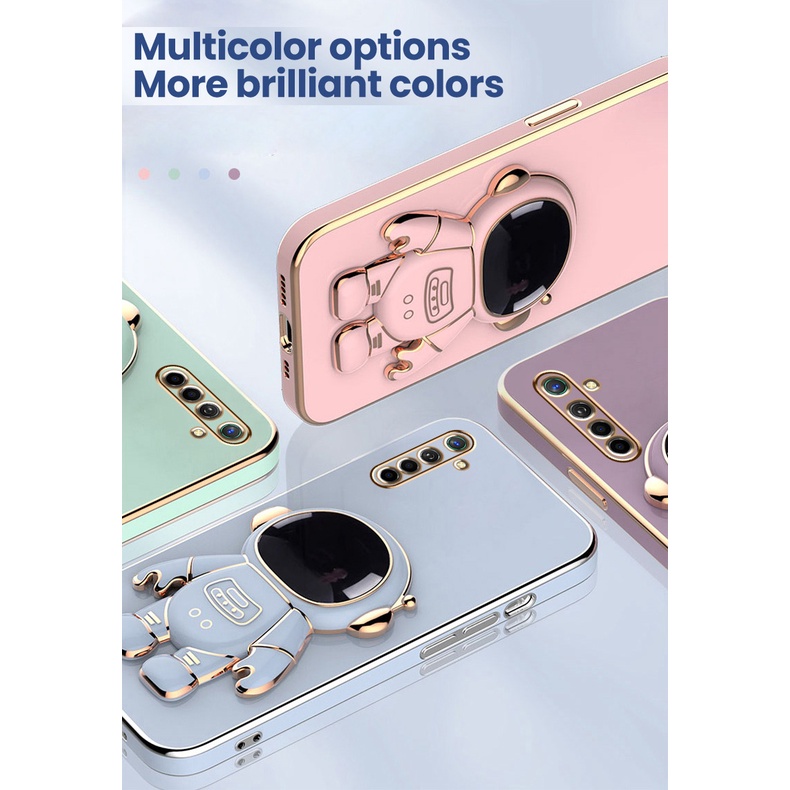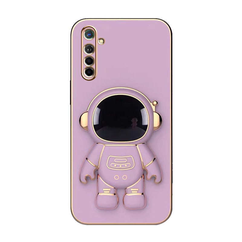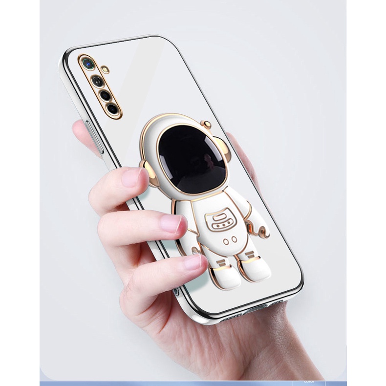 Realme 5 5i C3 6 Pro 8i 3D Astronaut Bracket Fold Stand Holder Luxury Plating Slim Soft TPU Case Cover