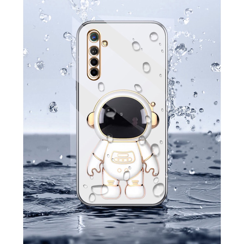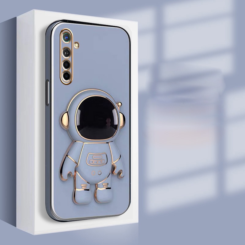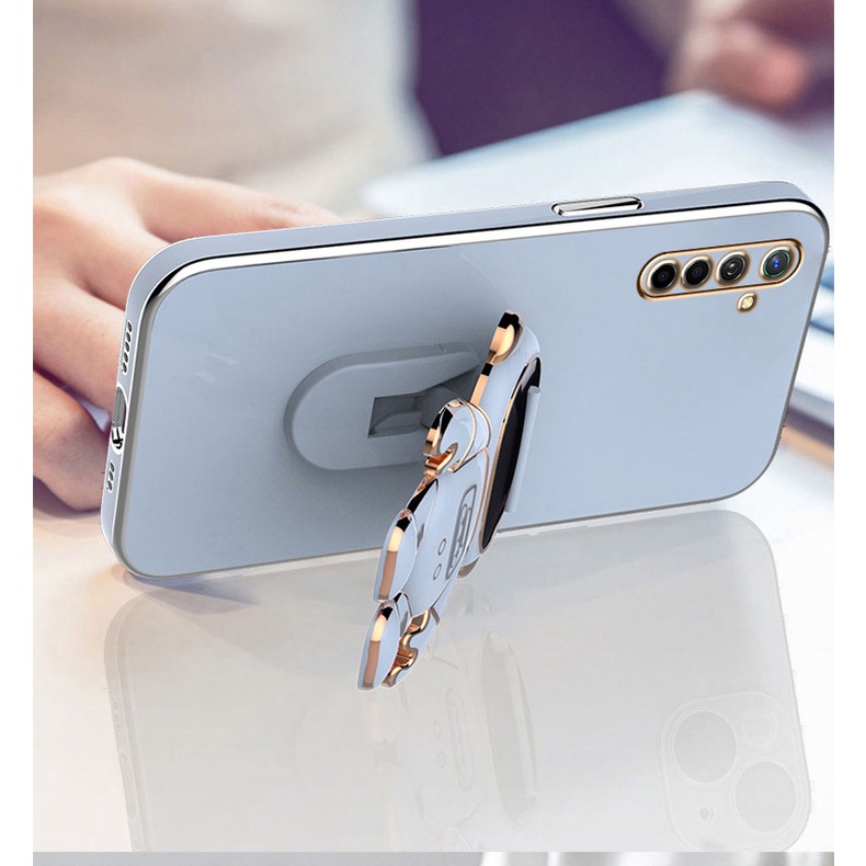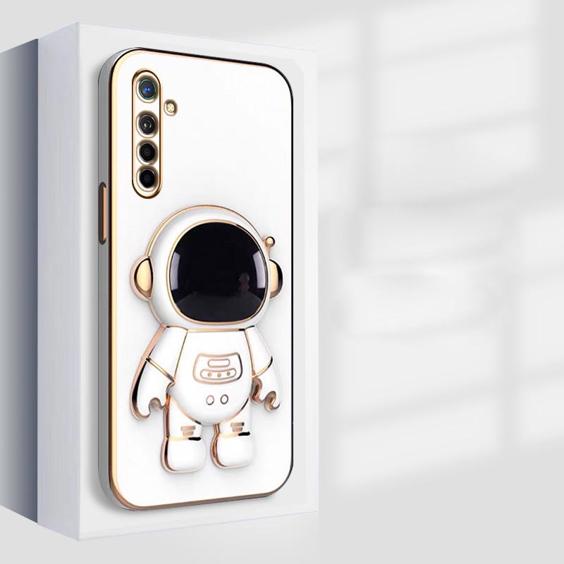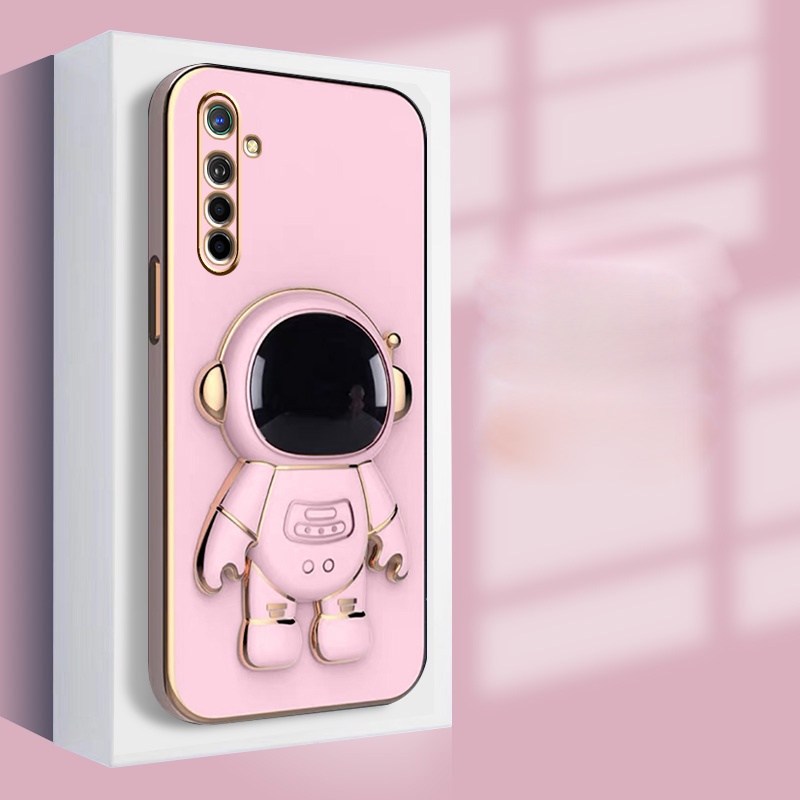 Realme 5 5i C3 6 Pro 8i 3D Astronaut Bracket Fold Stand Holder Luxury Plating Slim Soft TPU Case Cover