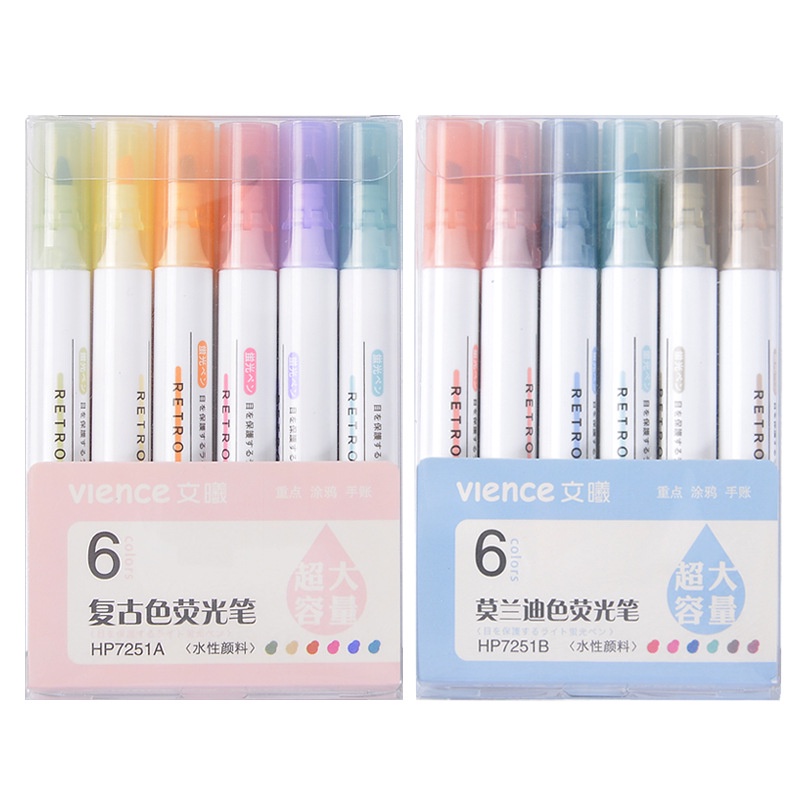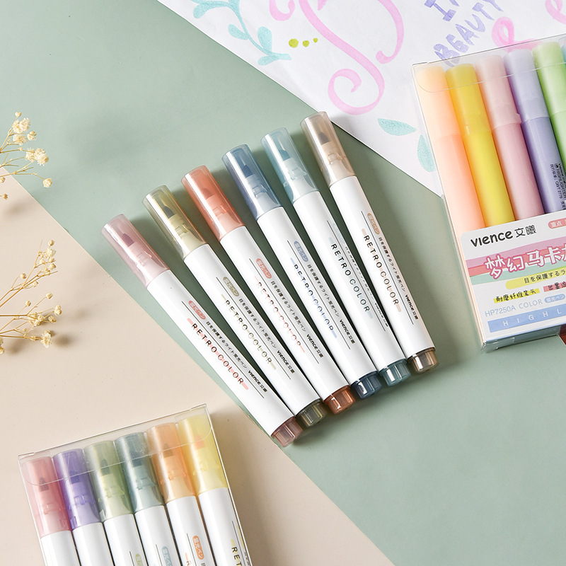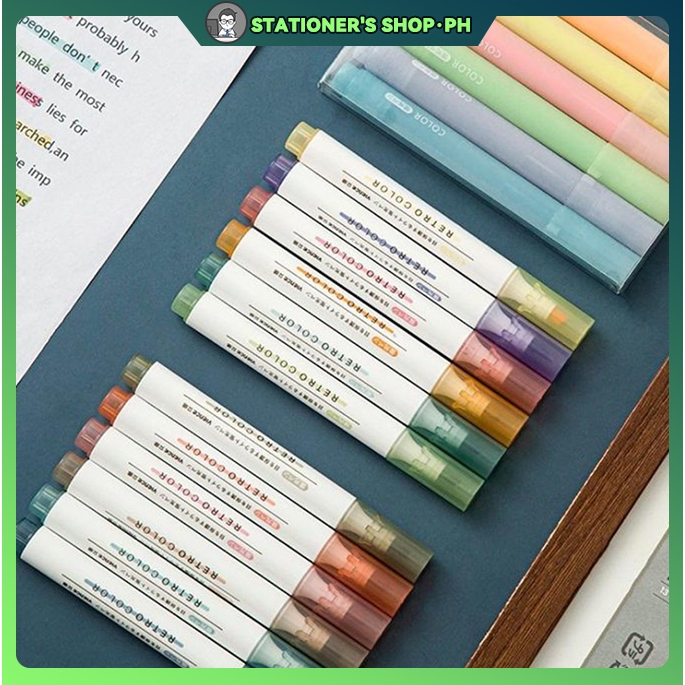 COD 6 Pcs Macaron Highlighter Fluorescent Pen Set Morandi Marker Pen School Supplies