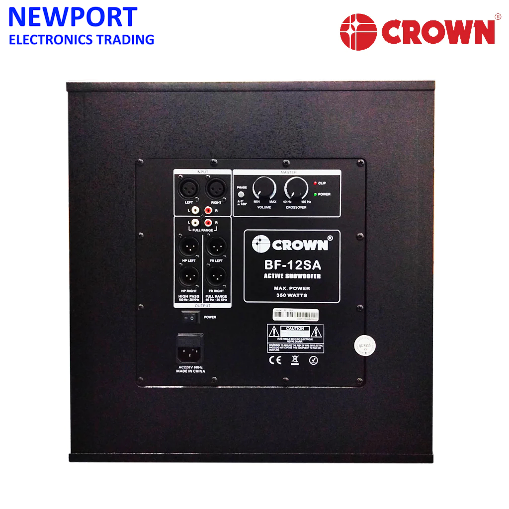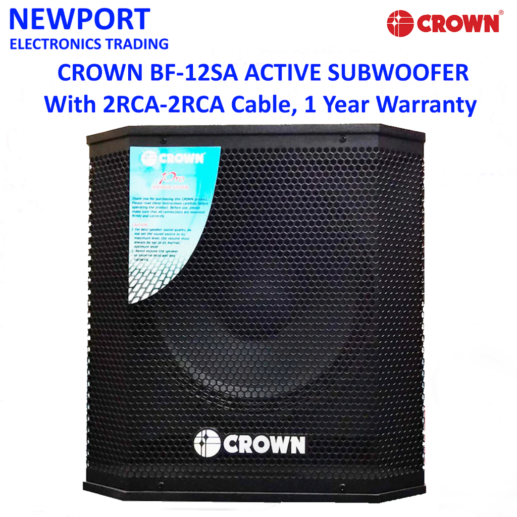 CROWN BF-12SA 12 INCH ACTIVE SUBWOOFER, POWERED SUBWOOFER WITH 2RCA-2RCA CABLE AND 1 YEAR WARRANTY