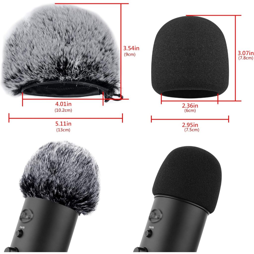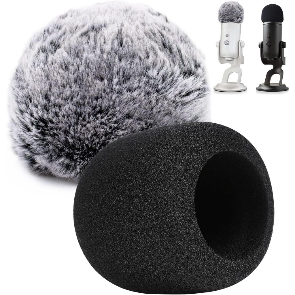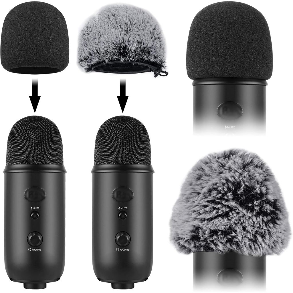 2Pcs Blue Yeti Microphone Covers Foam and Yeti Mic Furry Foam, Pop Filter for Blue Yeti Pro USB Condenser Microphone, Indoor Outdoor Pop Filter for Microphone