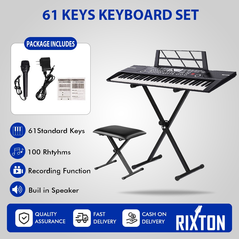 RIXTON 61-Key Electric Digital Piano Keyboard Portable Electronic Keyboard Beginners Set