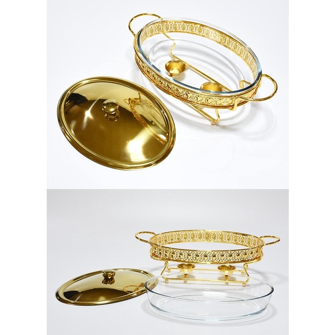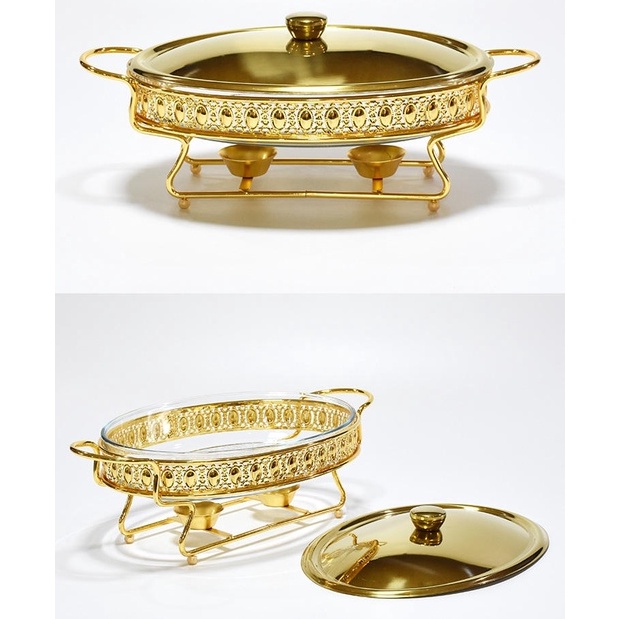 ✅New Trend✅ Luxury Gold/Silver Chafing Dish Buffet Food Warmer Display Egg Shape Casserole Display