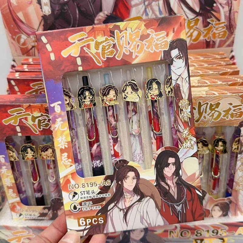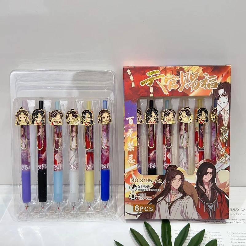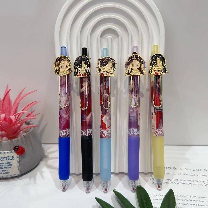 6Pcs/Set New Tian Guan Ci Fu Xie Lian Hua Cheng kawaii Metal Doll Heaven Official's Blessing Cartoon Gel Pen Animal shape Neutral Pen Signature Pen Student Stationery birthday gift