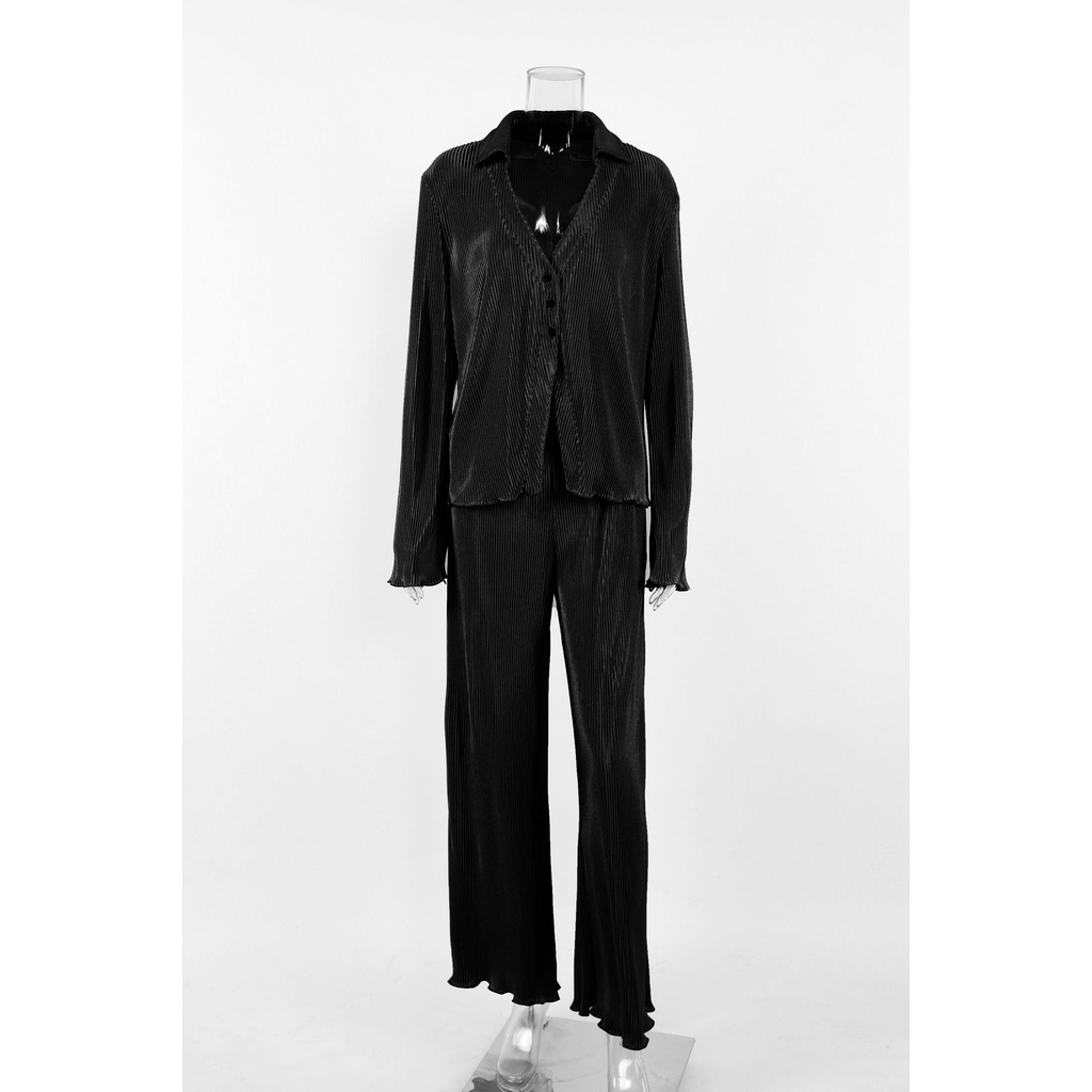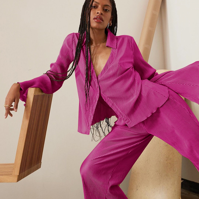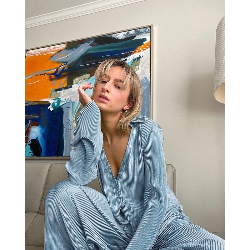 Retro long-sleeved pleated shirt women's 2021 European and American spring new design sexy loose flared sleeve shirt