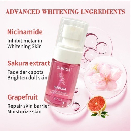 Sunisa Sakura Armpit Anti Sweat Fragrance Spray 40ml Underarm Whitening Deodorant Gentle On Skin