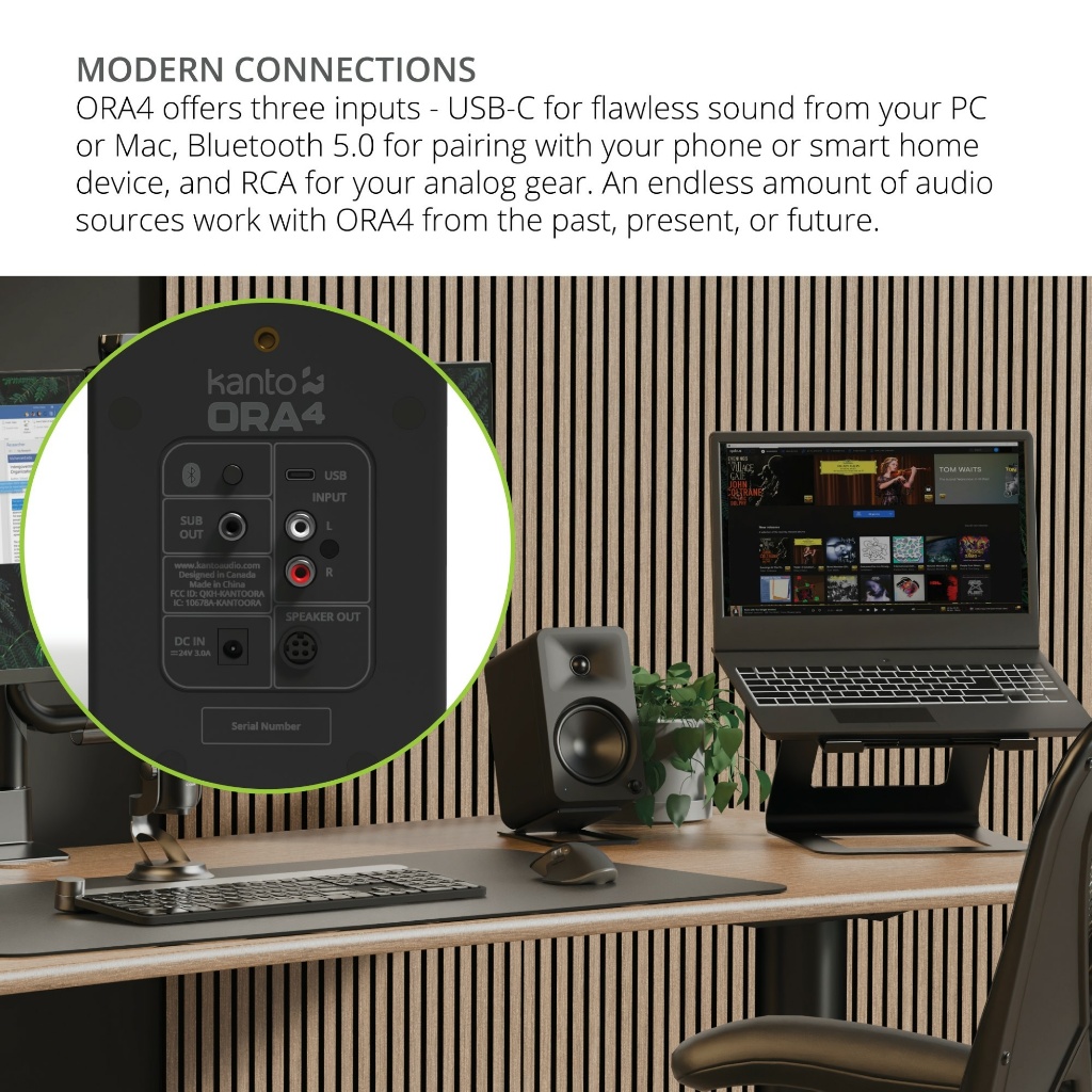 Kanto ORA4 Active Bluetooth Wireless Reference Desktop Speakers, powered speakers - Black