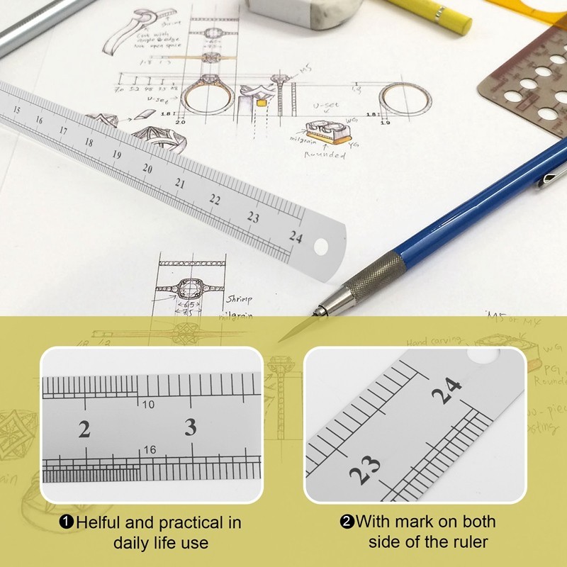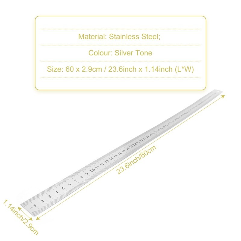 Stainless Steel 60cm 23.6 Inch Measuring Long Straight Ruler hzsynyikjyx