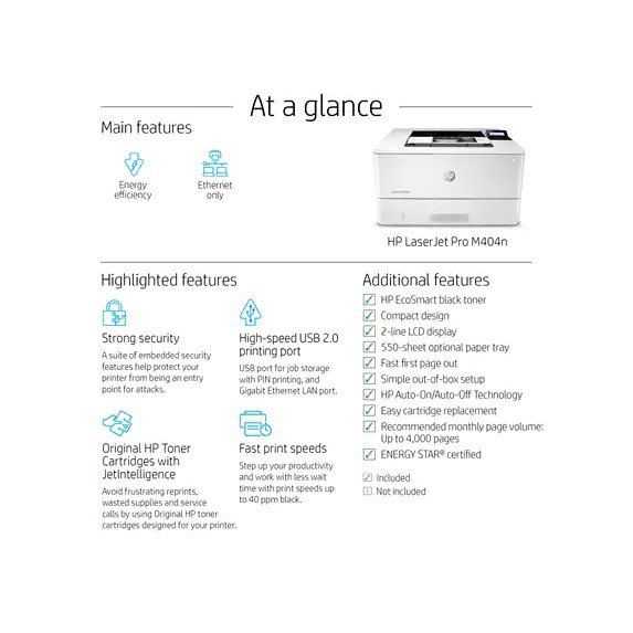 HP Printer LaserJet Pro M404n Printer Monochrome W1A52A