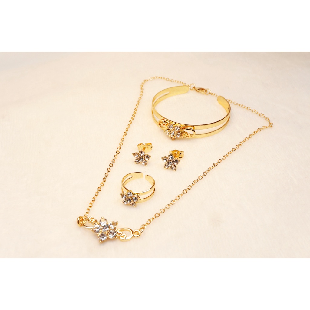 Fashion accessories Set 4 in 1 for kids flower design 18k Rose Gold bangkok plated