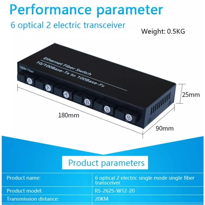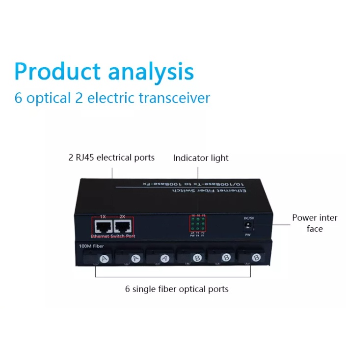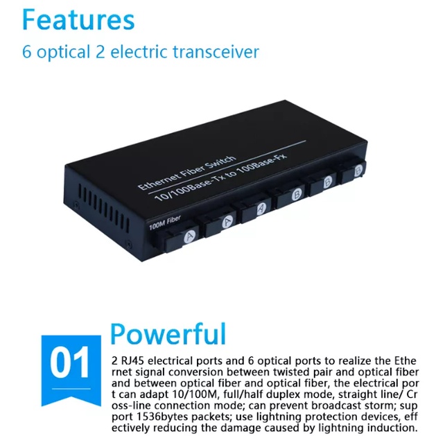 Allan Ethernet Fiber Switch 6 SC Port 2 RJ45 10 / 100M Ethernet Switch Media Converter/Hot Item