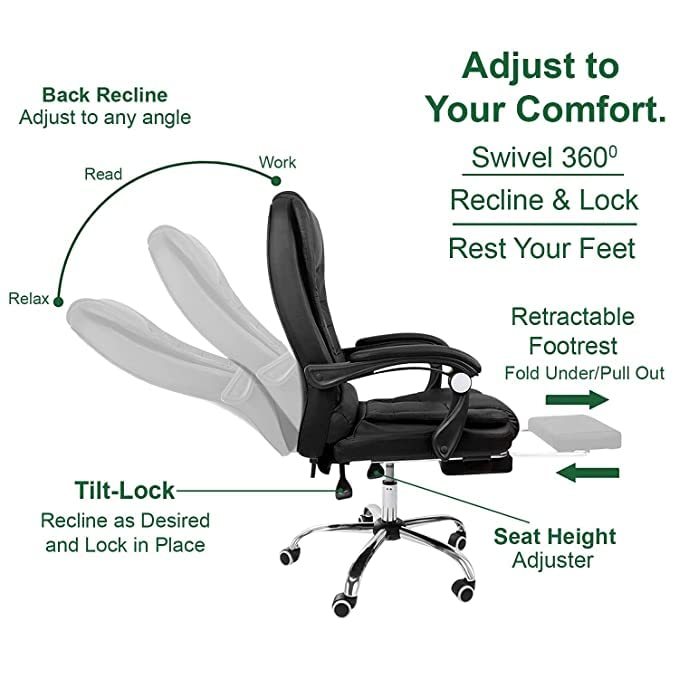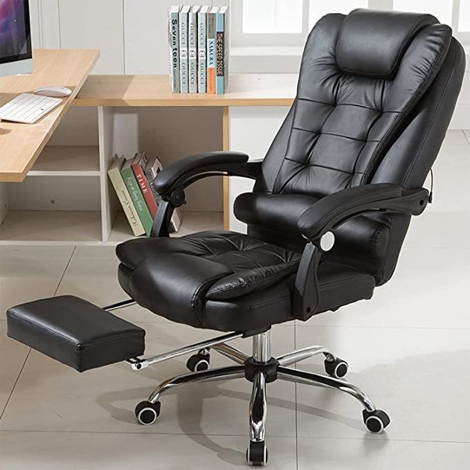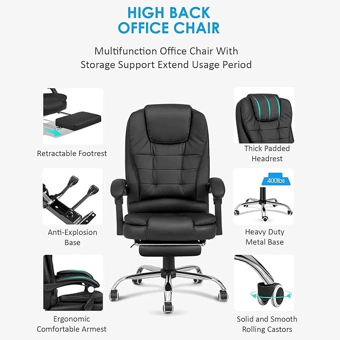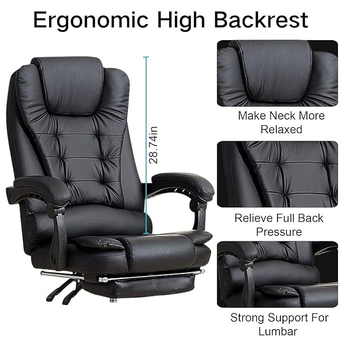 Leather Office Chair, High Back Ergonomic Home Office Executive Chair with Spacious Cushion Seat