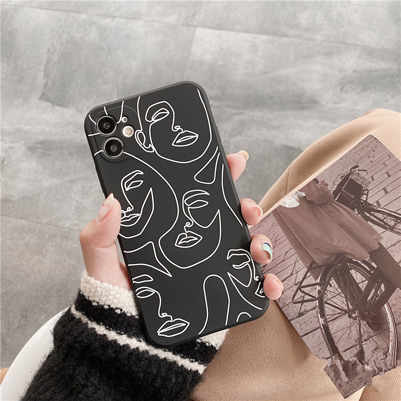 Huawei Y7A Y6P Y7P Y8P Y8S 2020 Y7 Pro Y9 Prime 2019 Y6 Y5 2019 Y6 Y7 2018 P40 Lite E Y7Pro 2019 Case Matte ins Simple Black Face illustration Soft TPU Full Phone Cover