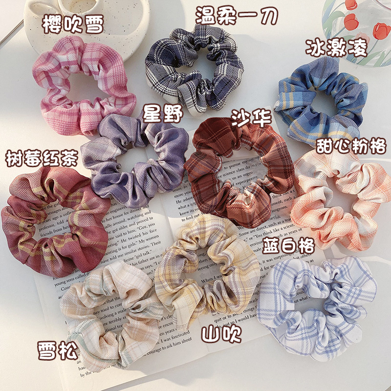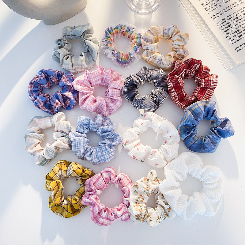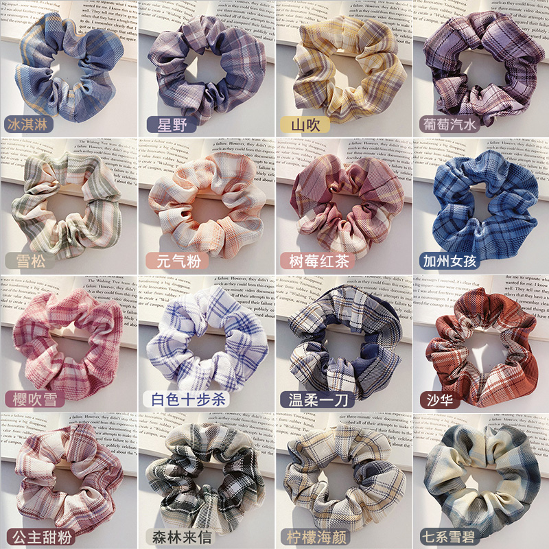 Chiffon Plaid Hair Tie Set Girls Ponytail Elastic Scrunchies Accessories