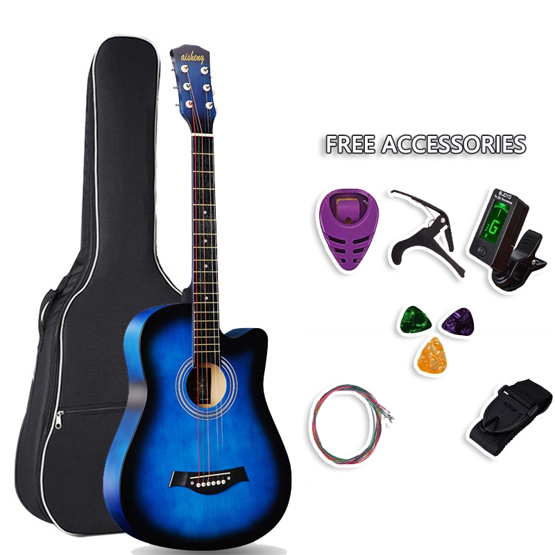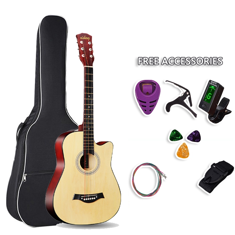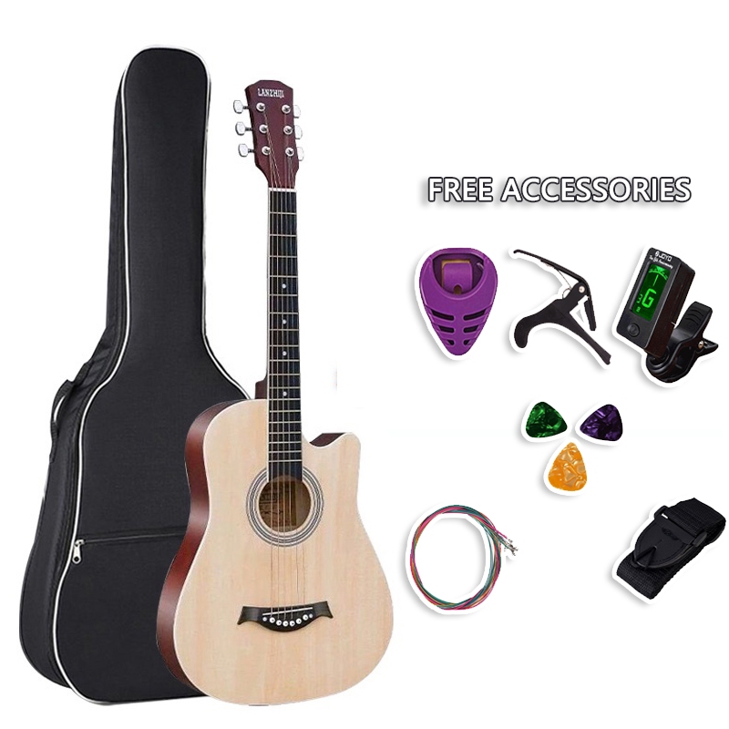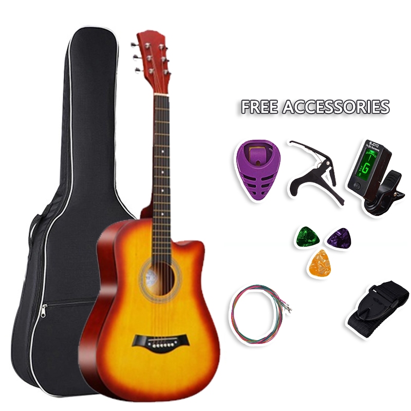 Guitar 38/41 Inche Acoustic Guitar Original Low Action Guitar for Kids Adults Beginners Full set