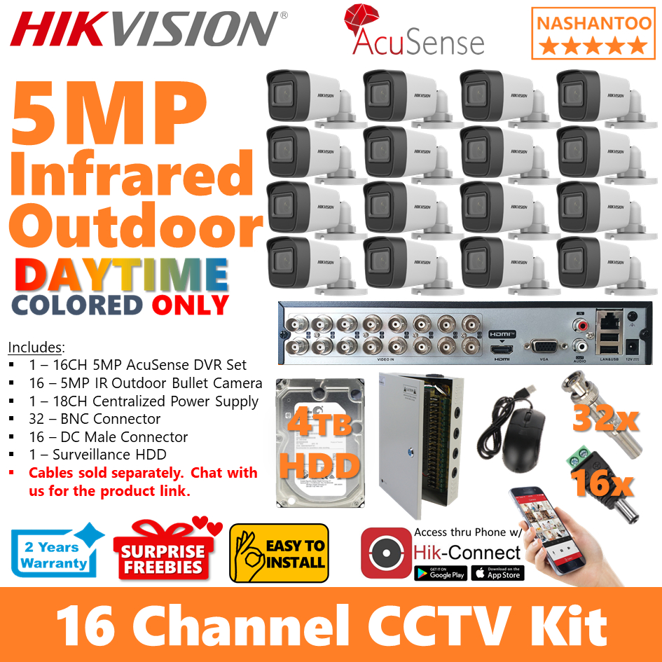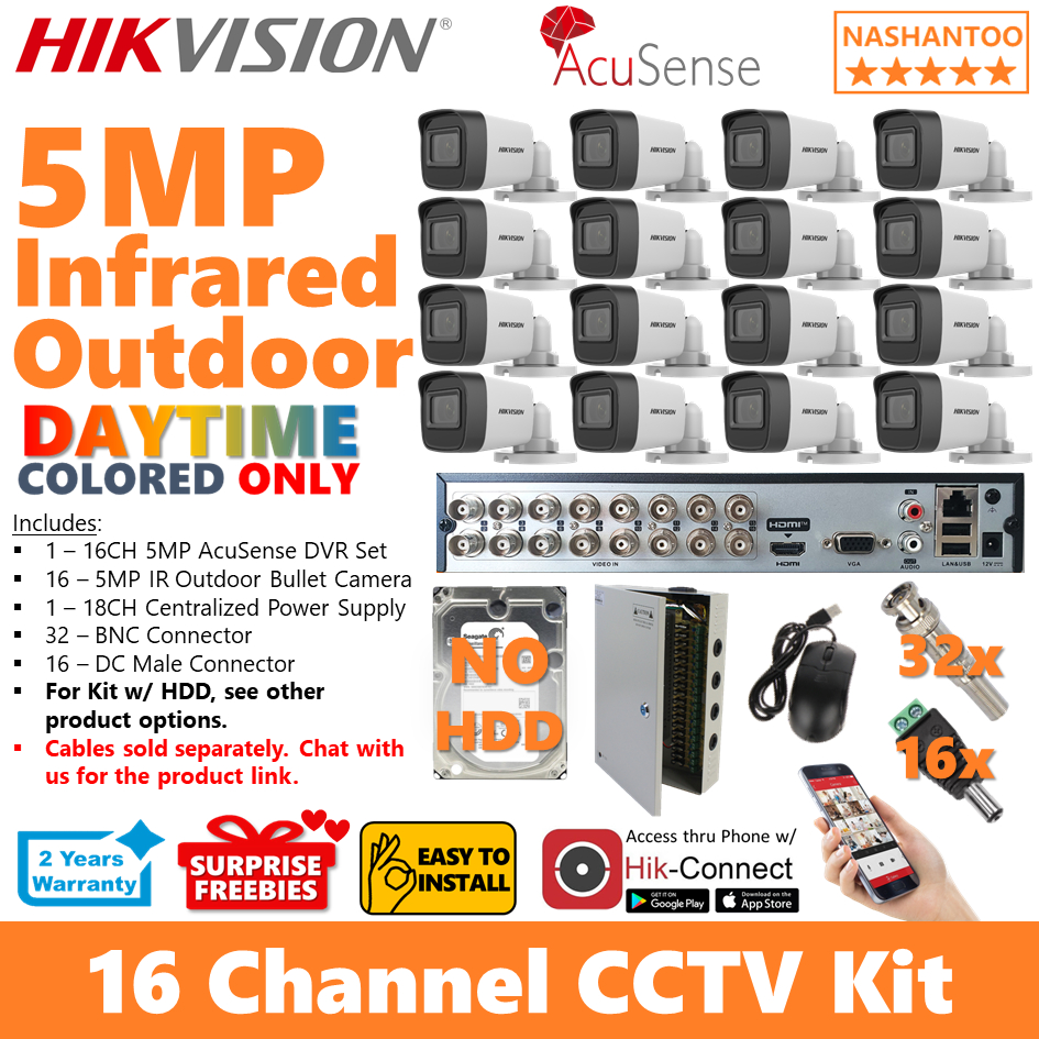 Hikvision 16CH 5MP 16Camera IR Outdoor CCTV Package DIY Kit 16/16IRV5 CPS (optional HDD) (NO cables)